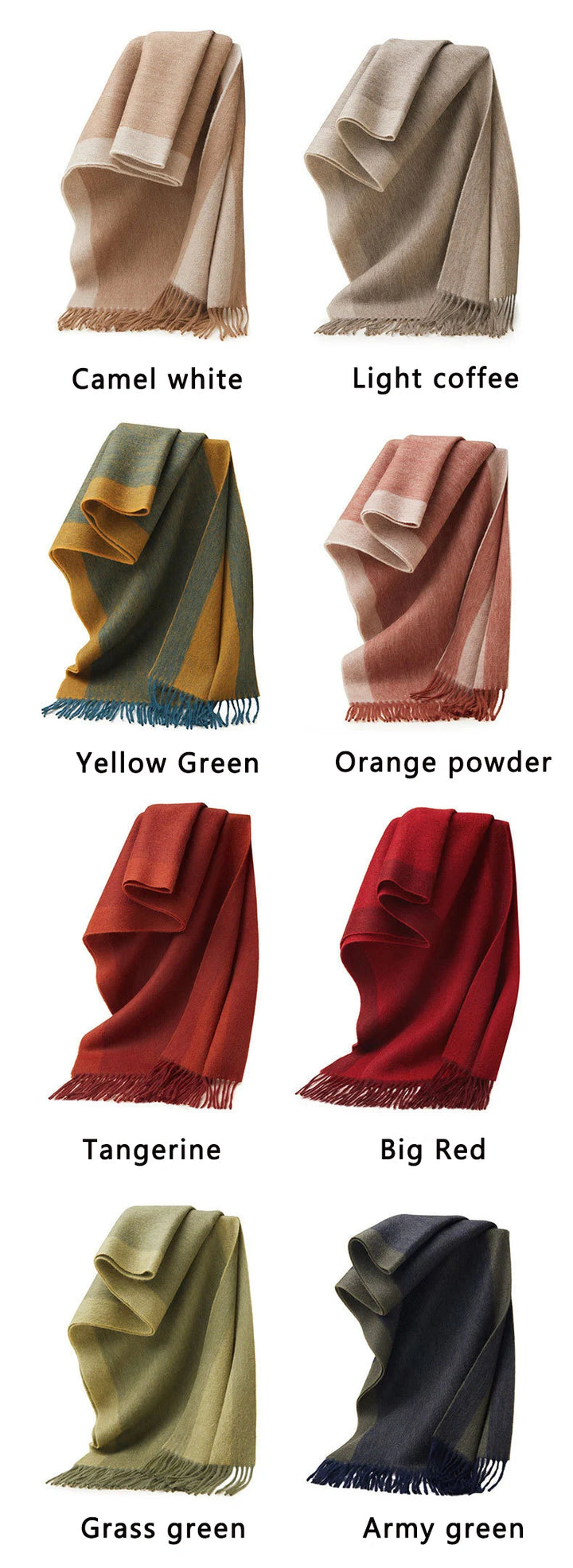 100% double-sided pure wool scarf for winter warmth and versatile tassel men's and women's wool shawl