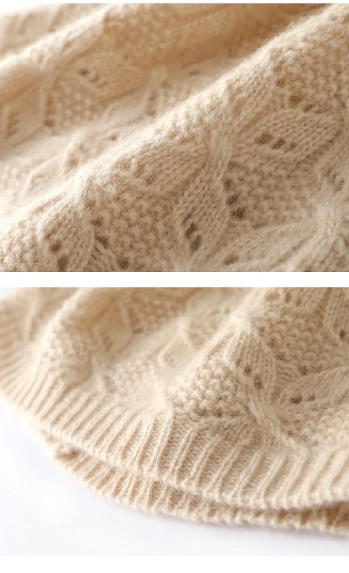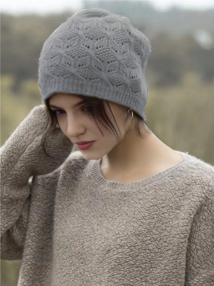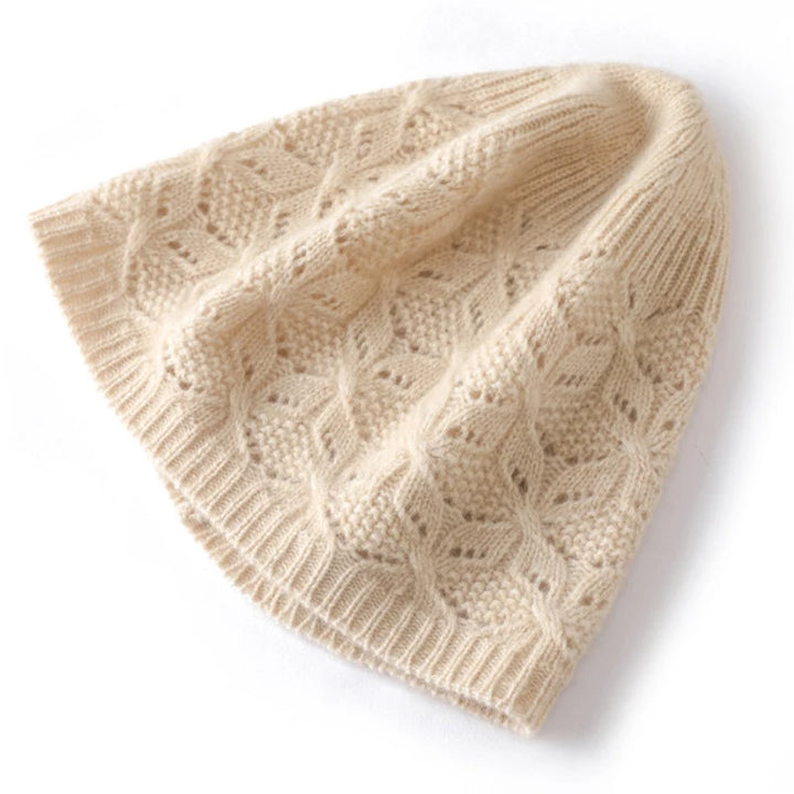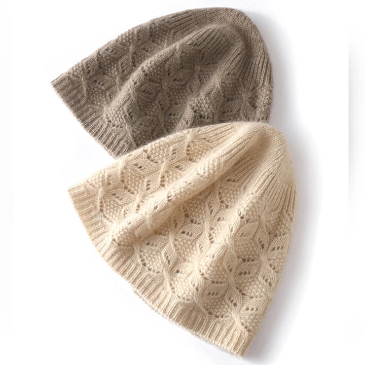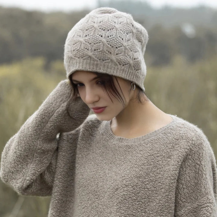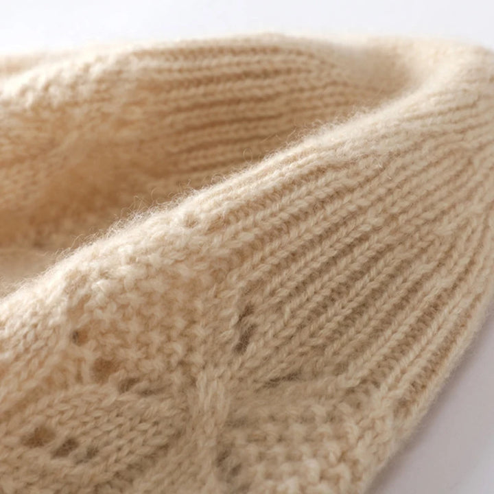 100% Merio Wool Fashion Beanies for Women Autumn Winter Fashion Hollow Out Soft Warm Wollen Skullies Cap Luxury Cashmere Bonnet