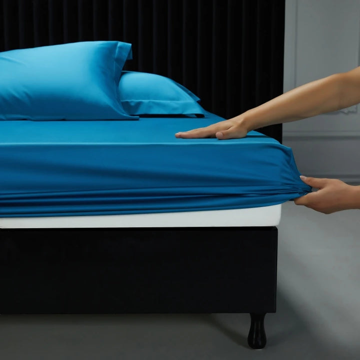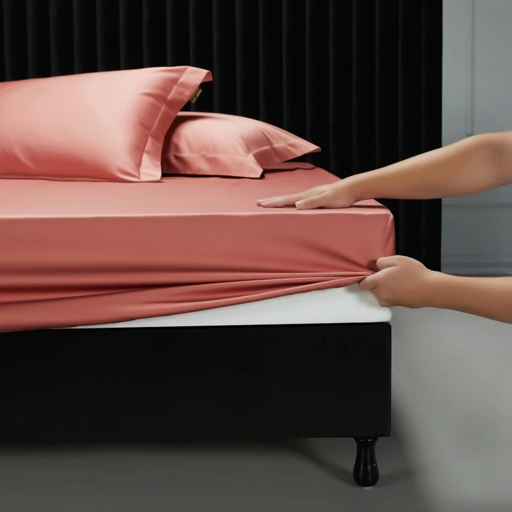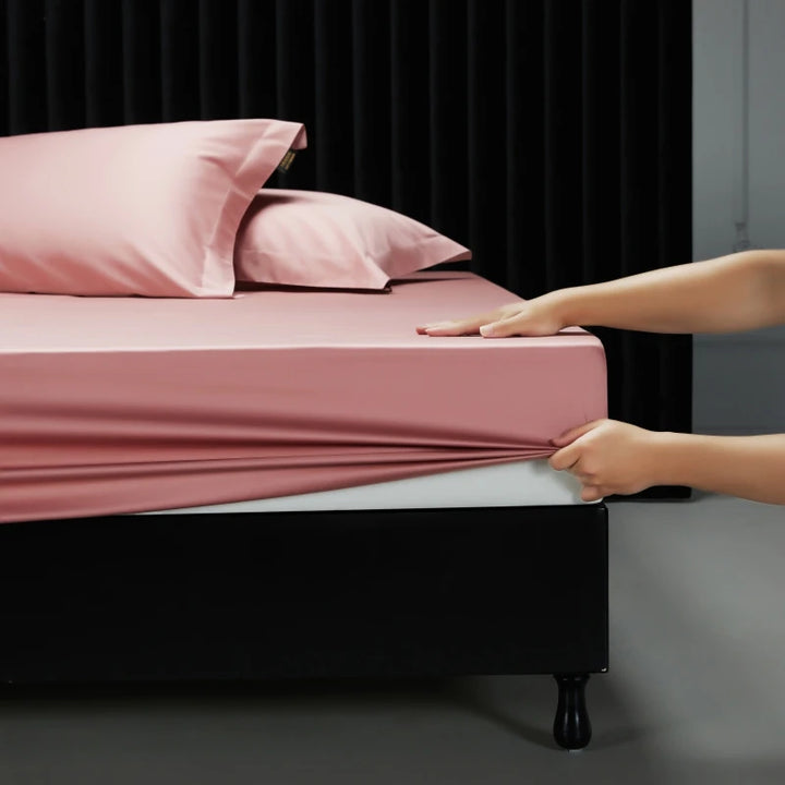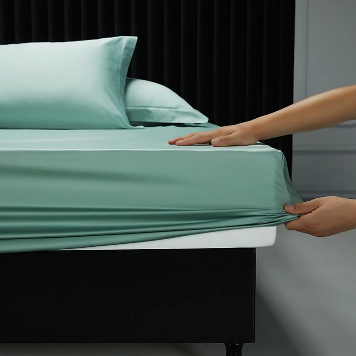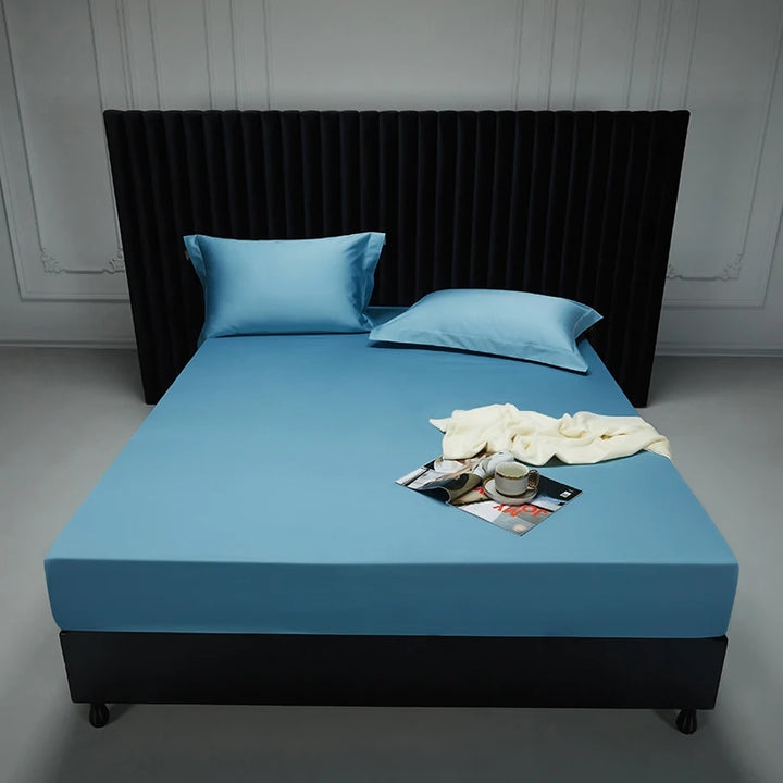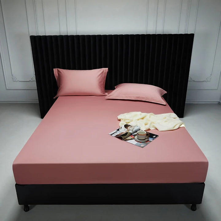 1000TC Egyptian Cotton Fitted Sheet Solid Color Bed Sheet Mattress Cover Elastic Band Fitted Sheet 160x200 180X200 Fit Sheet 1Pc