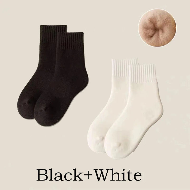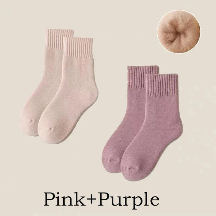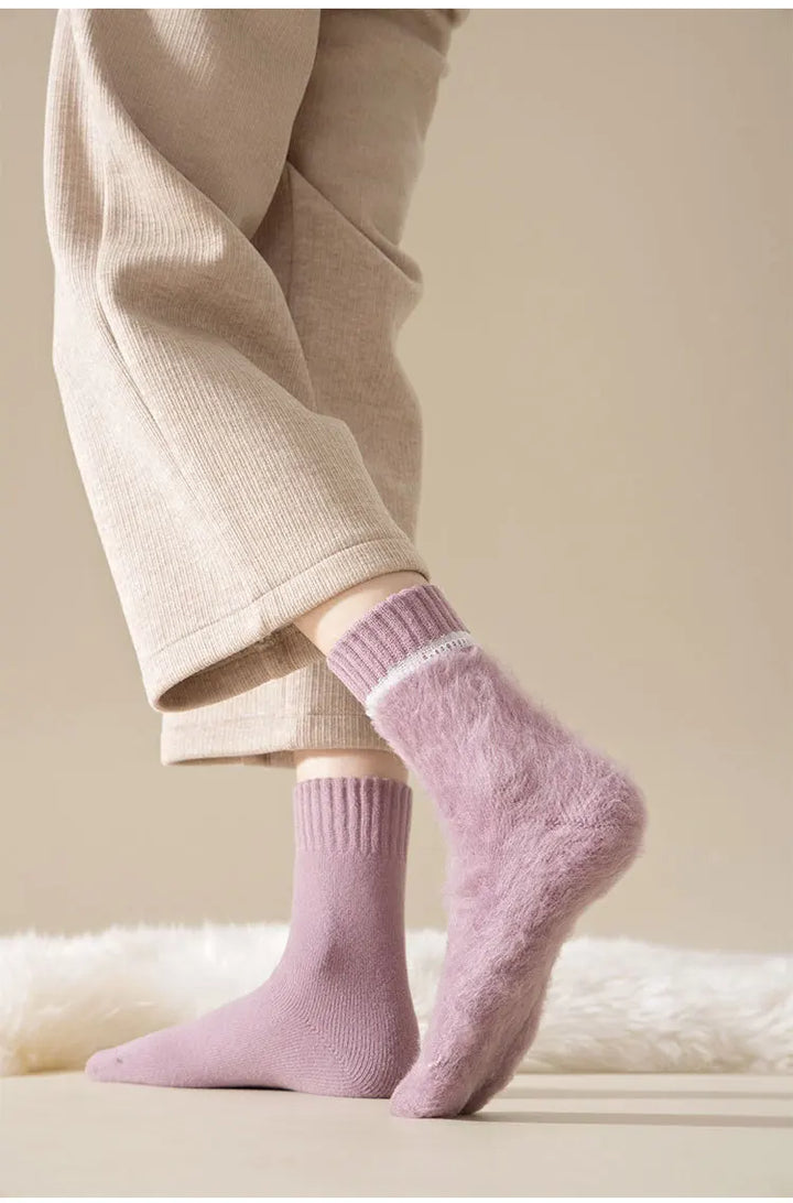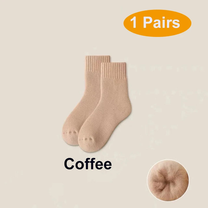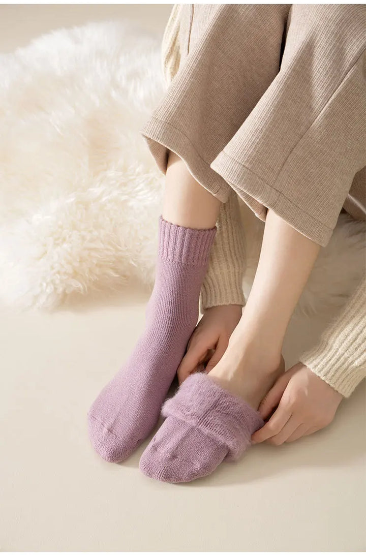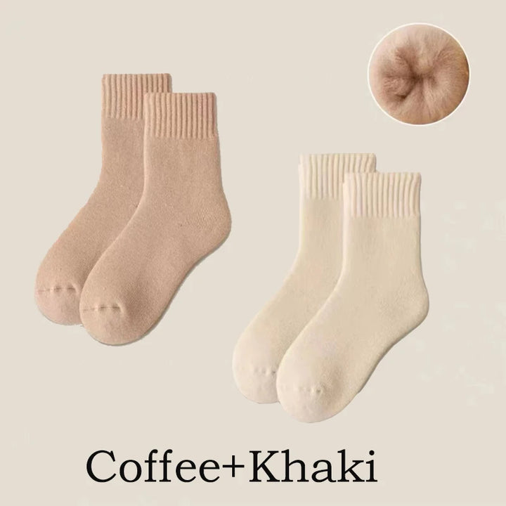 2 Pairs Women Socks Wool Winter Warm Socks Snow Markron Color Thick Plush Hairy Soft Postpartum Stockings Floor Sleep Socks