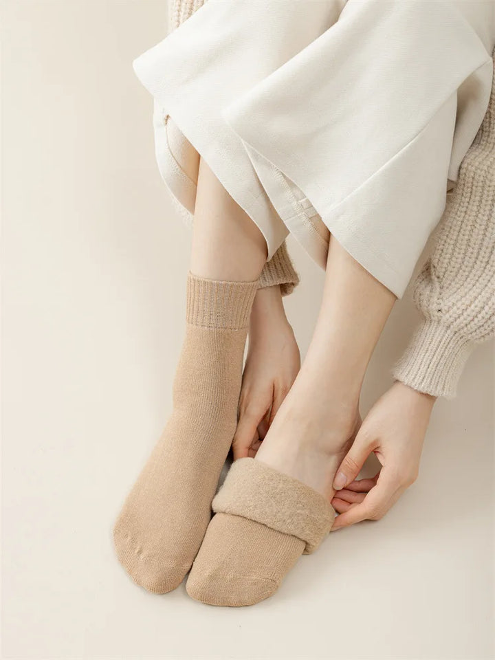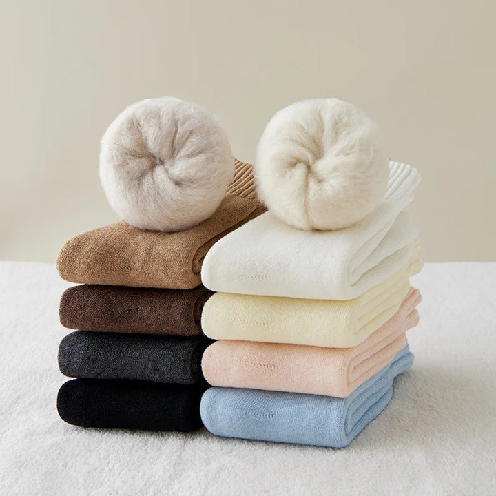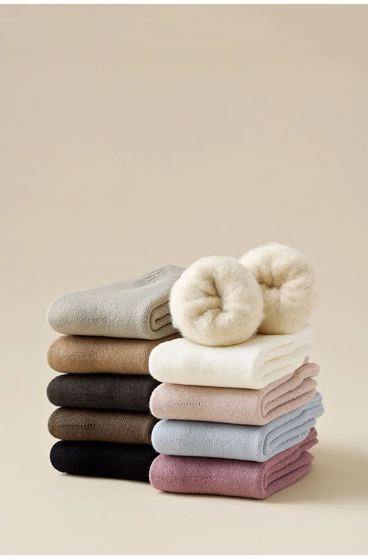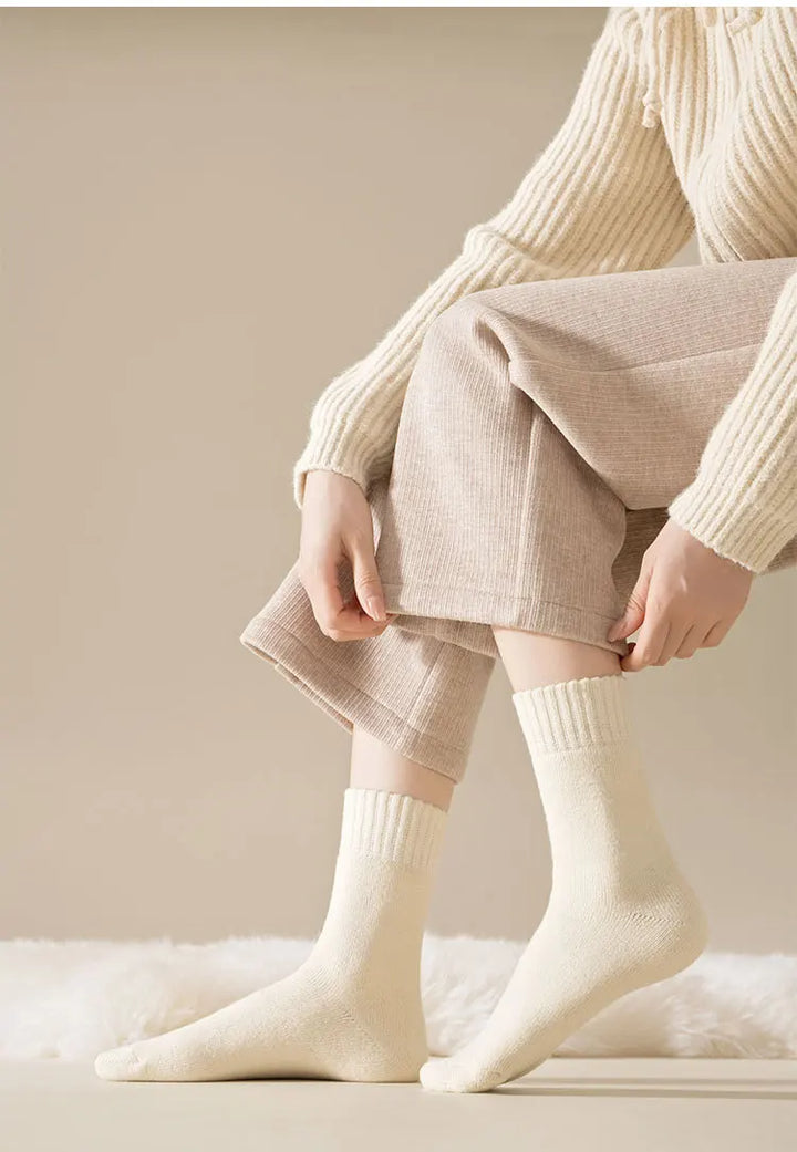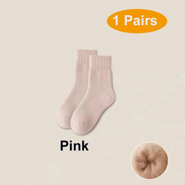 2 Pairs Women Socks Wool Winter Warm Socks Snow Markron Color Thick Plush Hairy Soft Postpartum Stockings Floor Sleep Socks