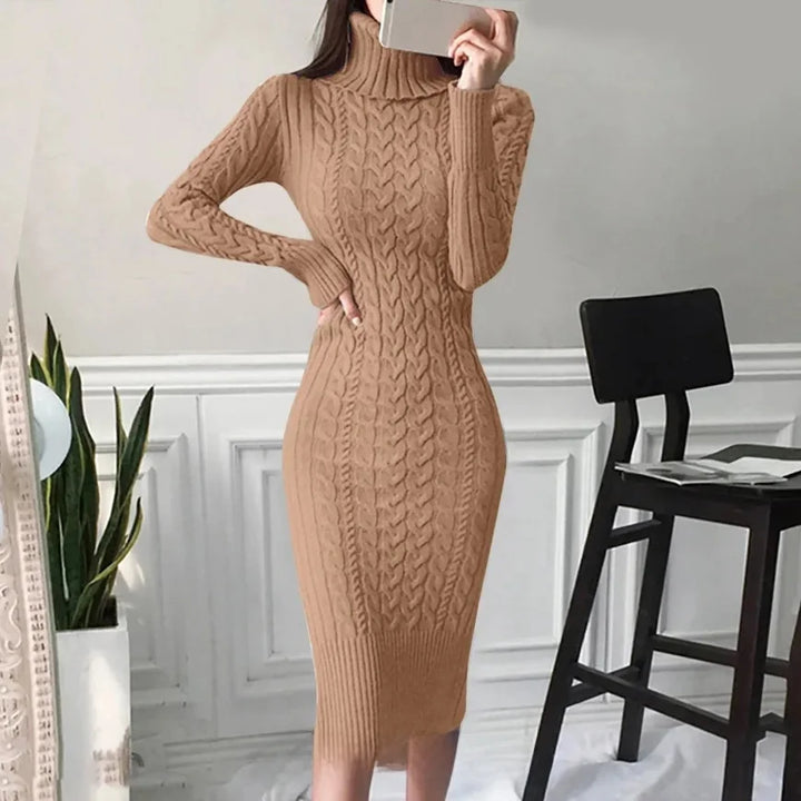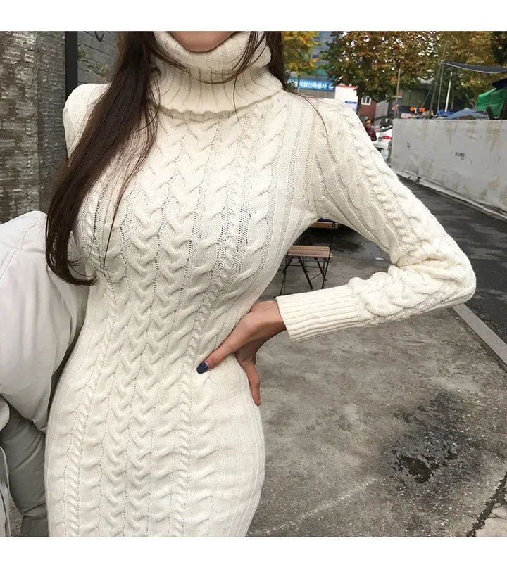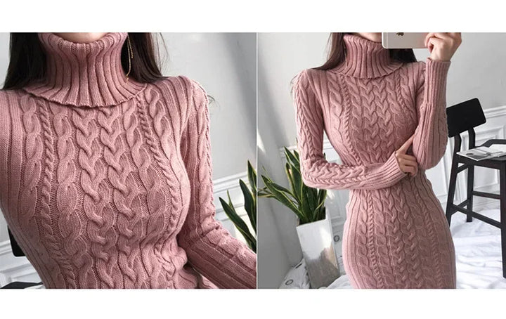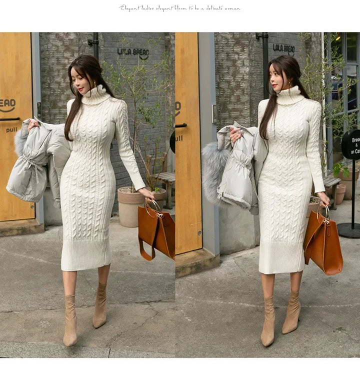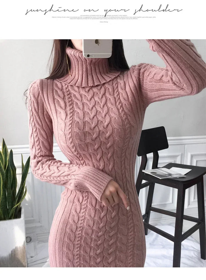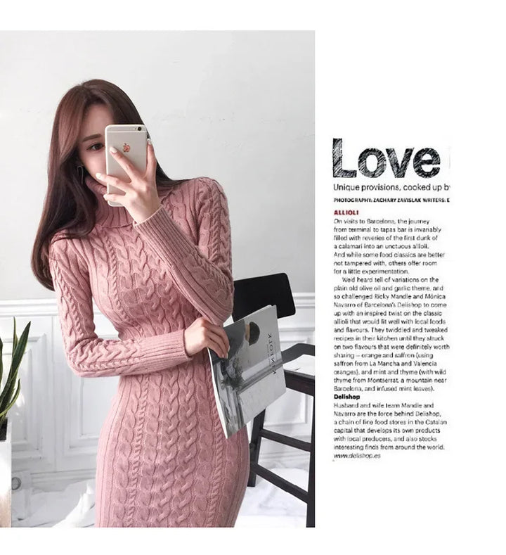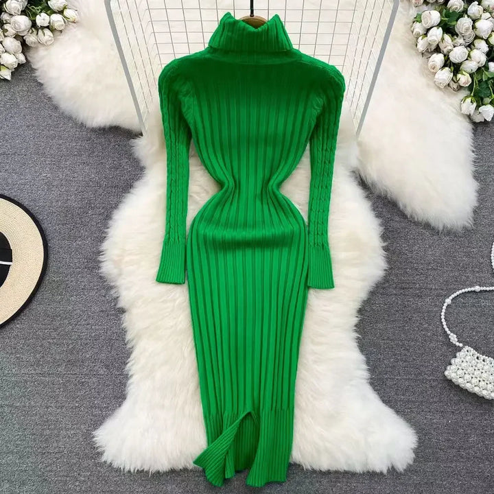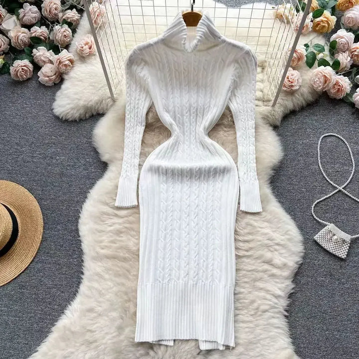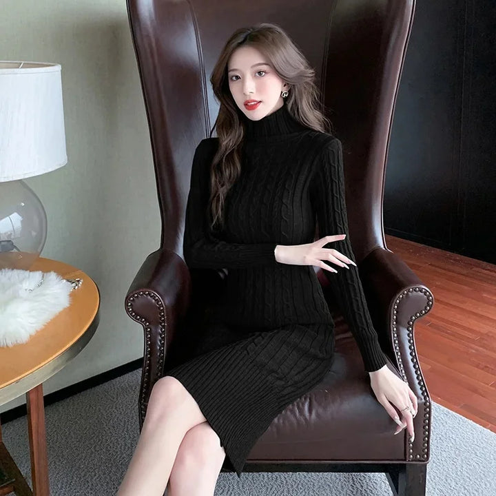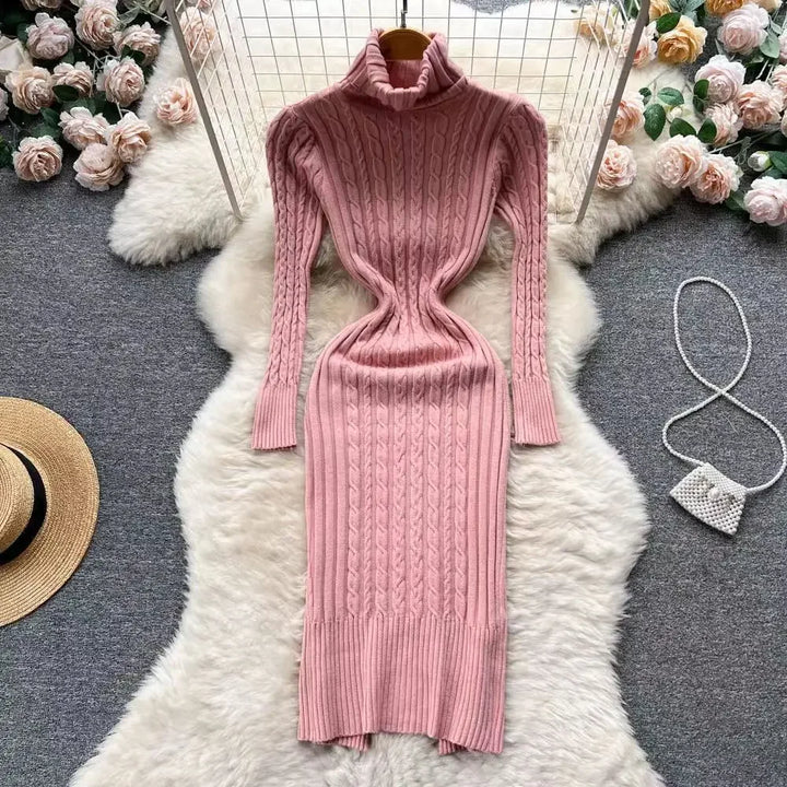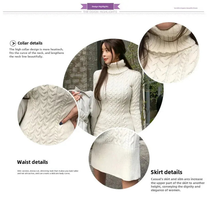 2024 Autumn/Winter Women's Knit Dress Sexy Polo/Turtle Neck Long Sleeve Medium-Length Slimming Smooths Your Silhouette