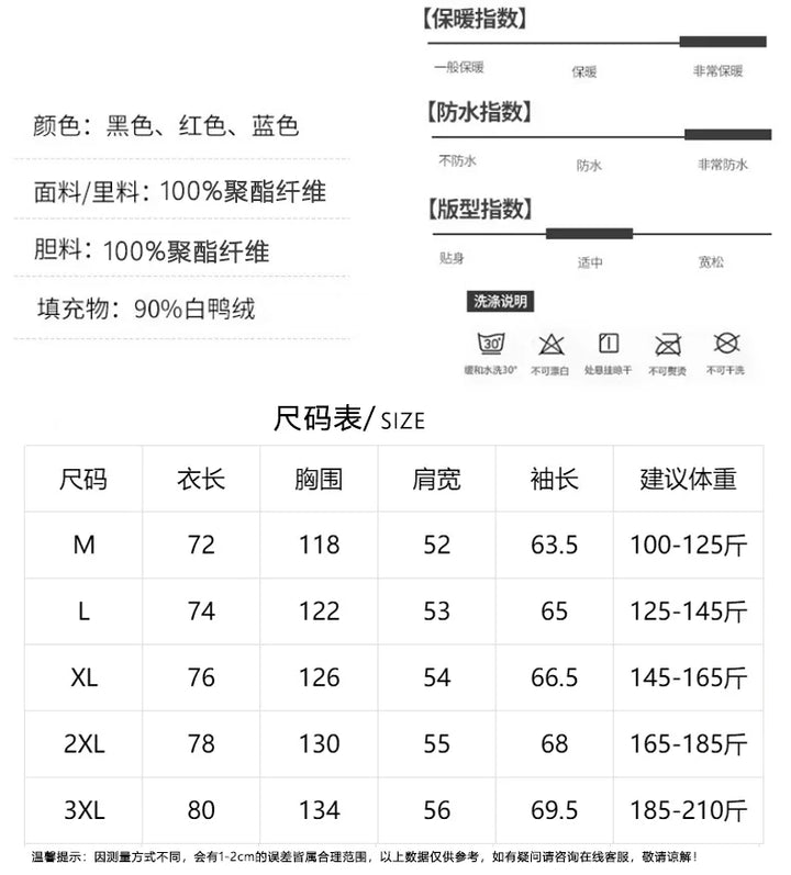 2024 Winter New Men's Puffer Jacket Fashion Thick Men Women Duck Down Jacket Outdoor Warm Casual Coats Solid Hooded Overcoats