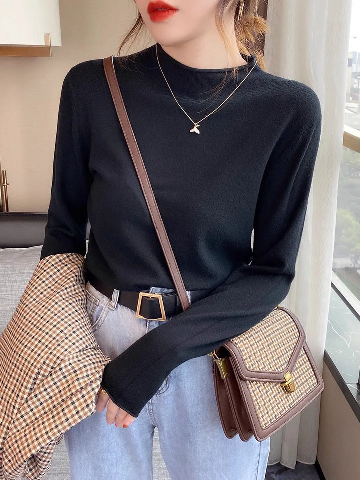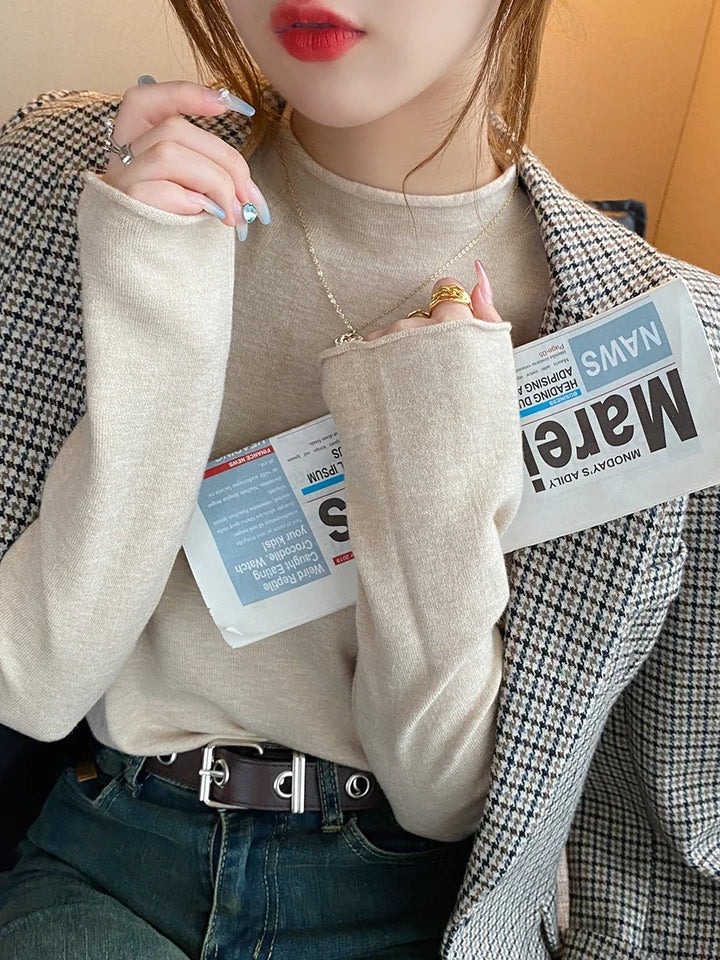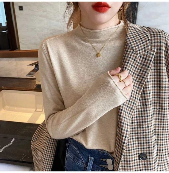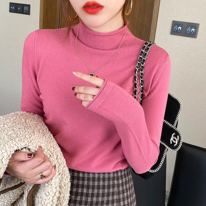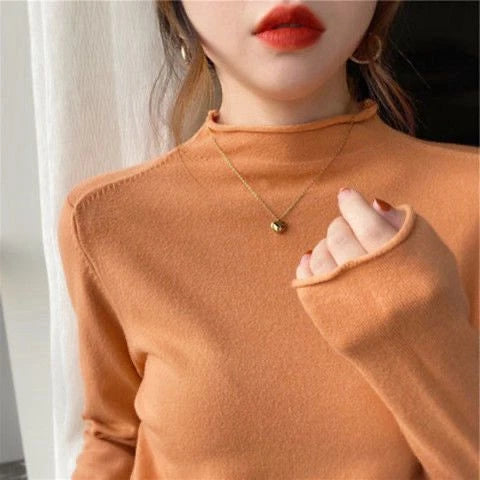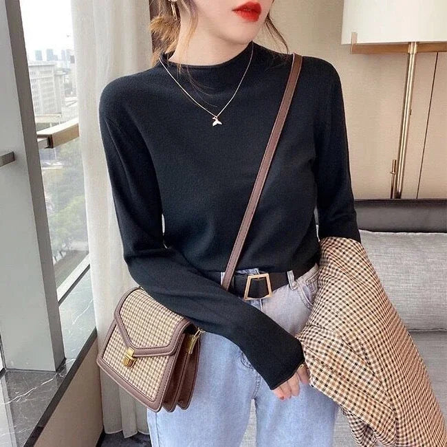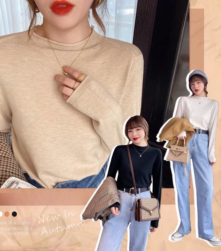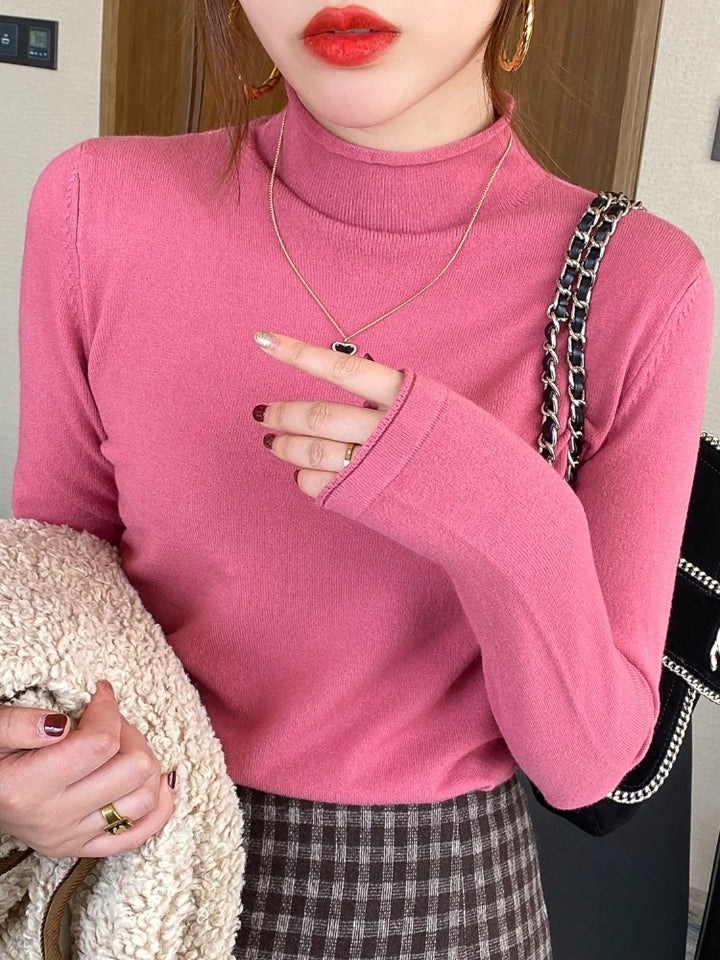 2025 Autumn Winter Fashion Turtleneck Sweater Women's Casual Vintage Knitted Pullovers Korean Solid Style Simple Base Layer Tops