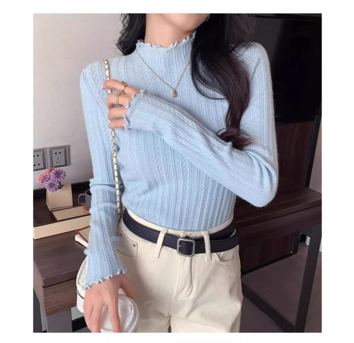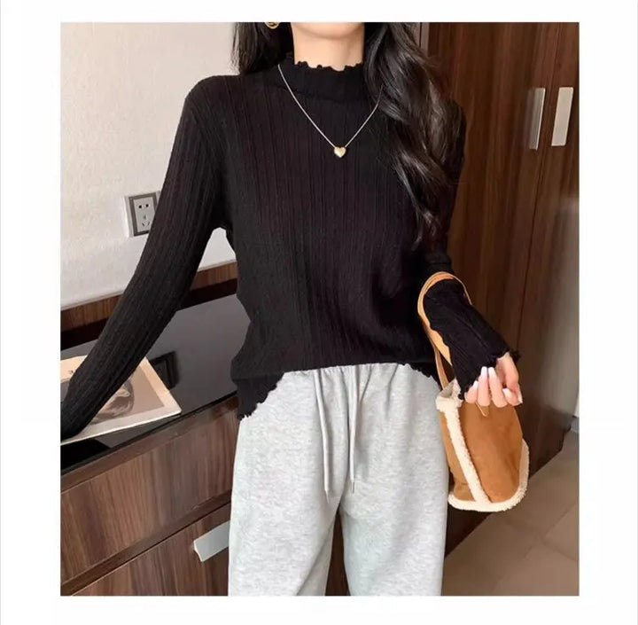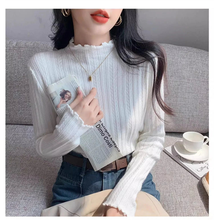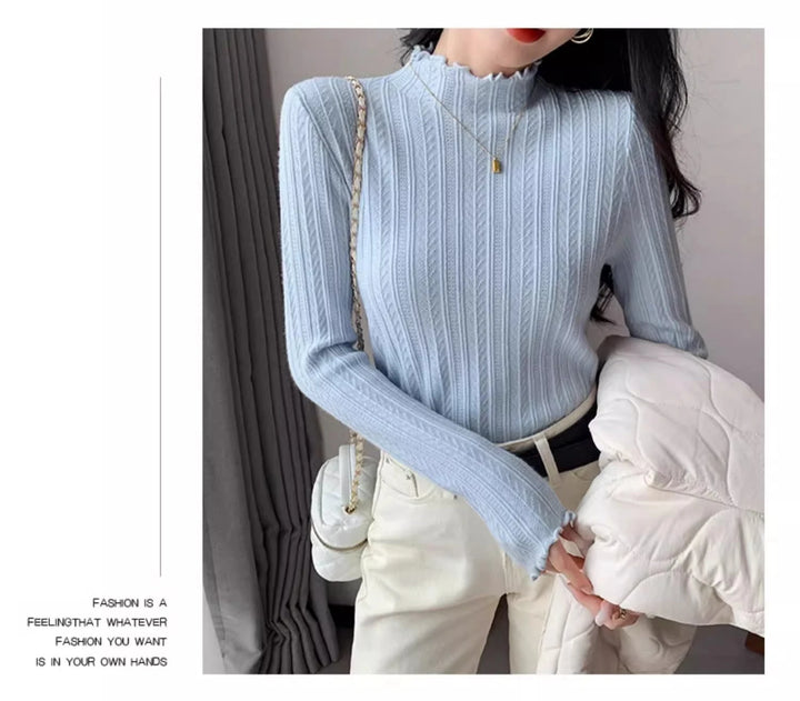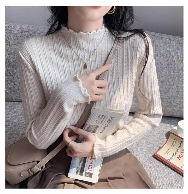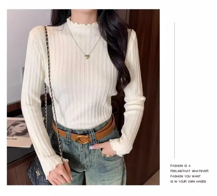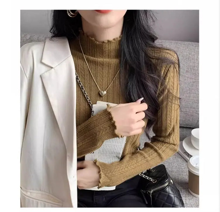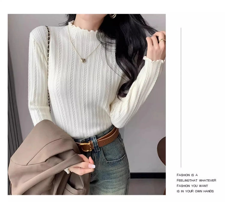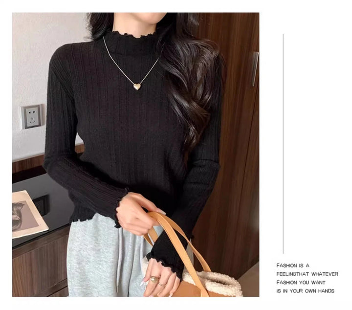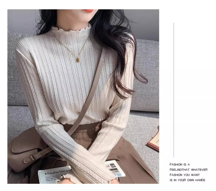 2025 Autumn Winter Long Sleeve Women Mock Neck Sweater Casual Knitted Pullover Korean Fashion Slim Ladies Warm Tops