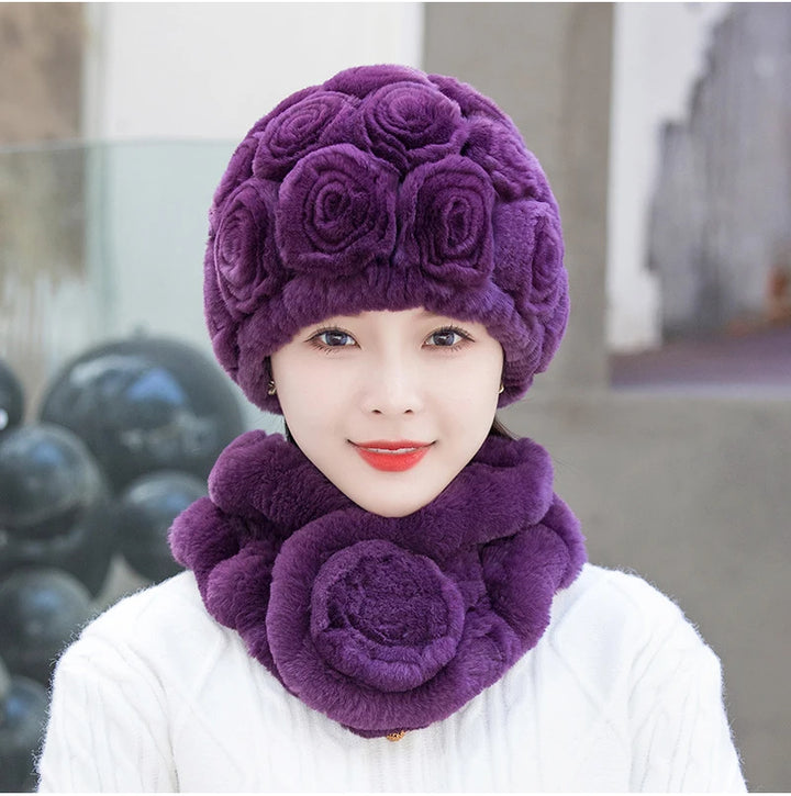 2025 Hot Sale Women Winter Fur Hat Scarf Sets Natural Warm Real Rex Rabbit Fur Cap Scarves Lady Knitted Genuine Fur Hats Muffler