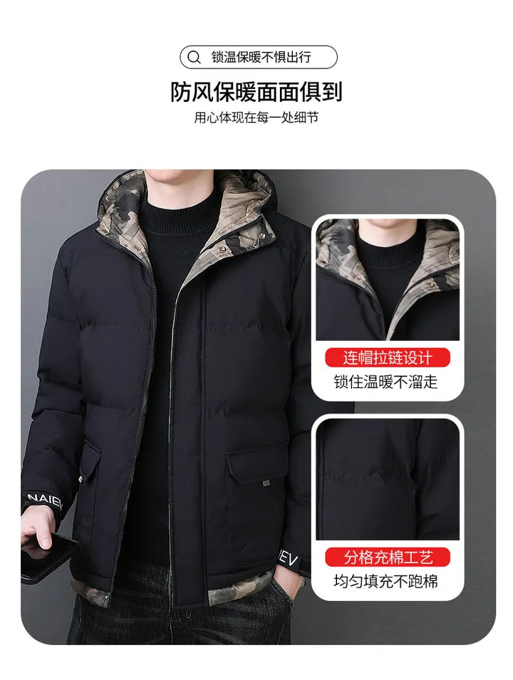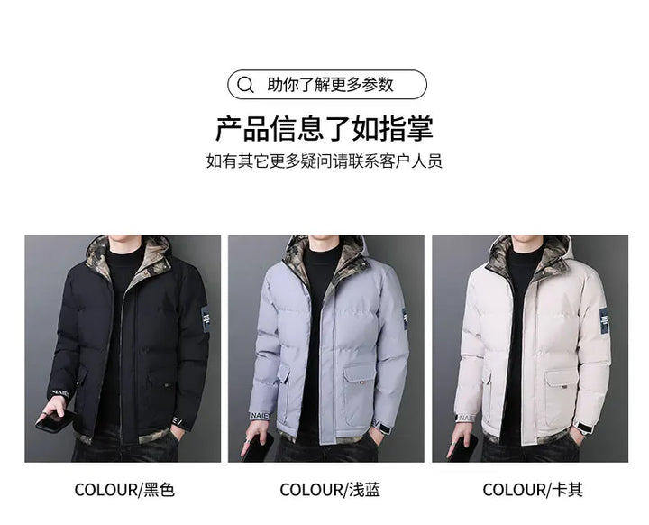 Model Number: 2025 Mens Winter Warm Thickened Cotton Parkas Male Hooded Casual Loose