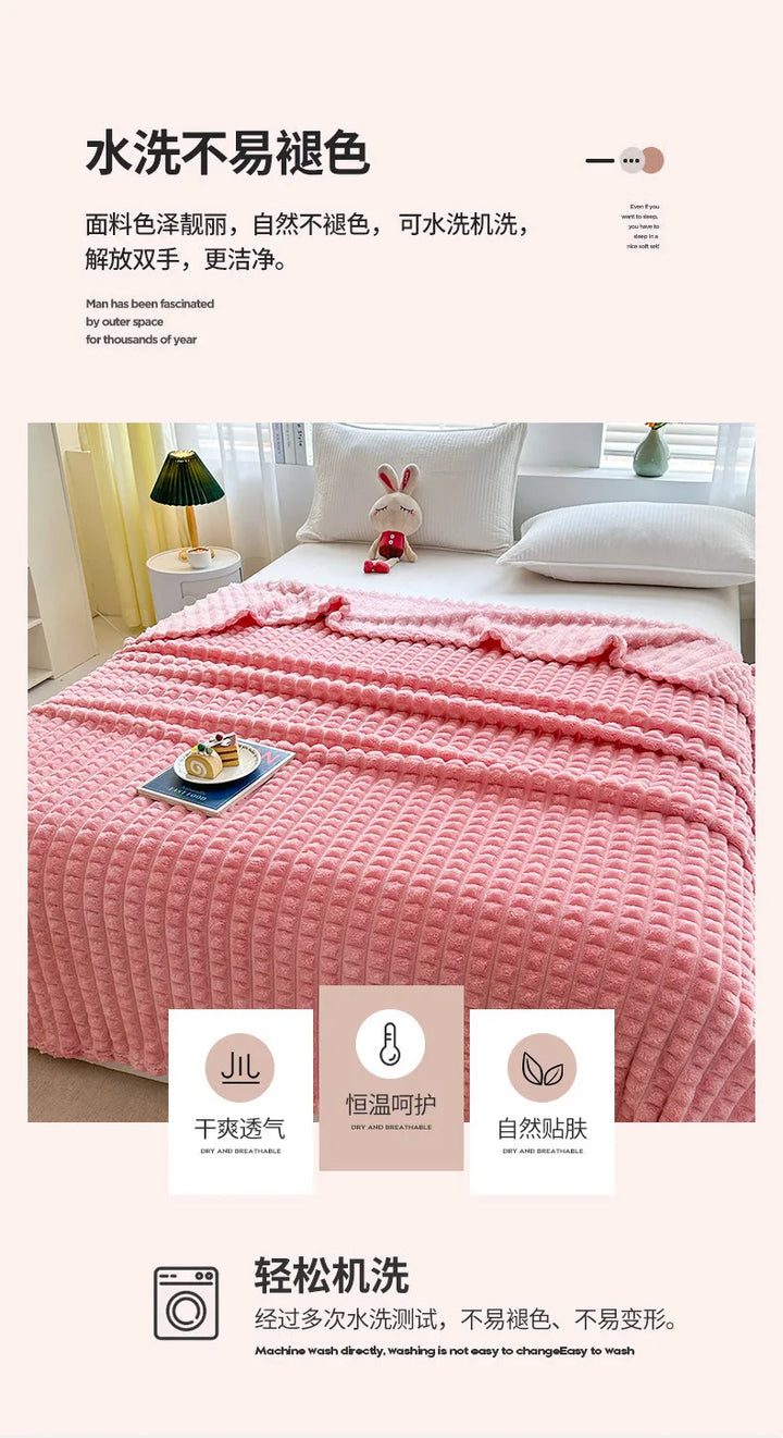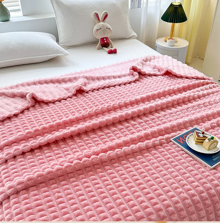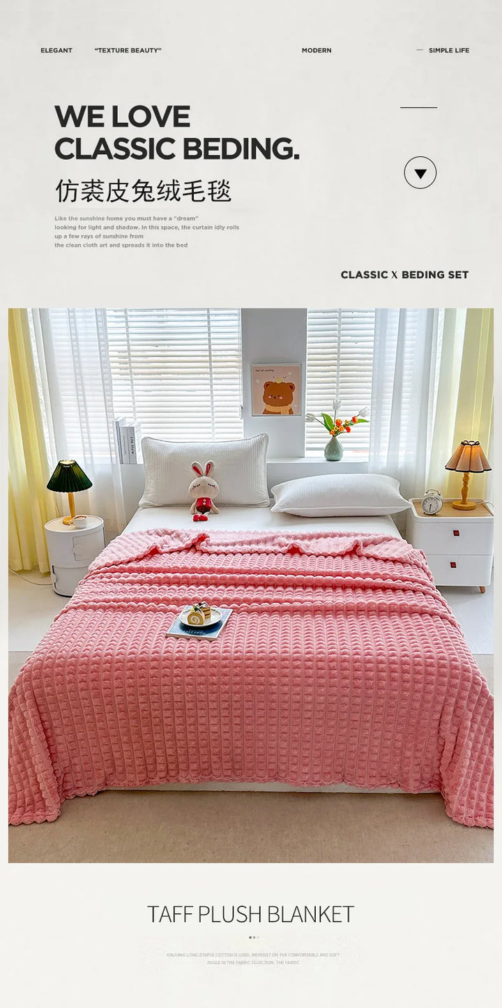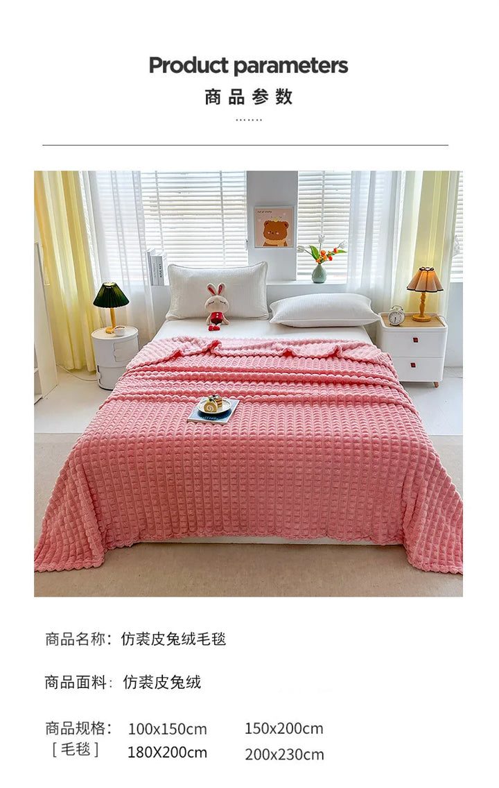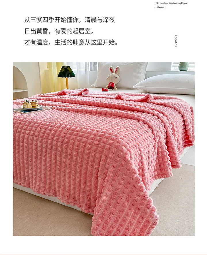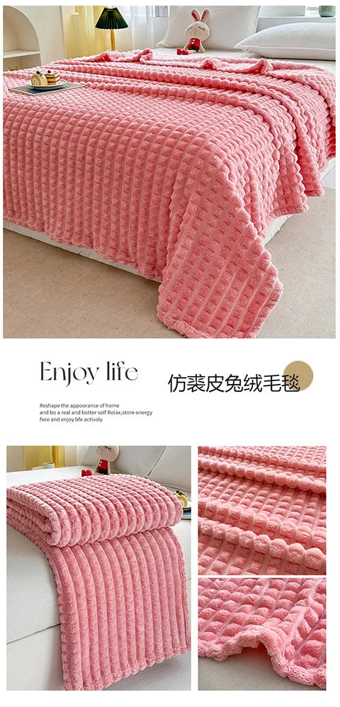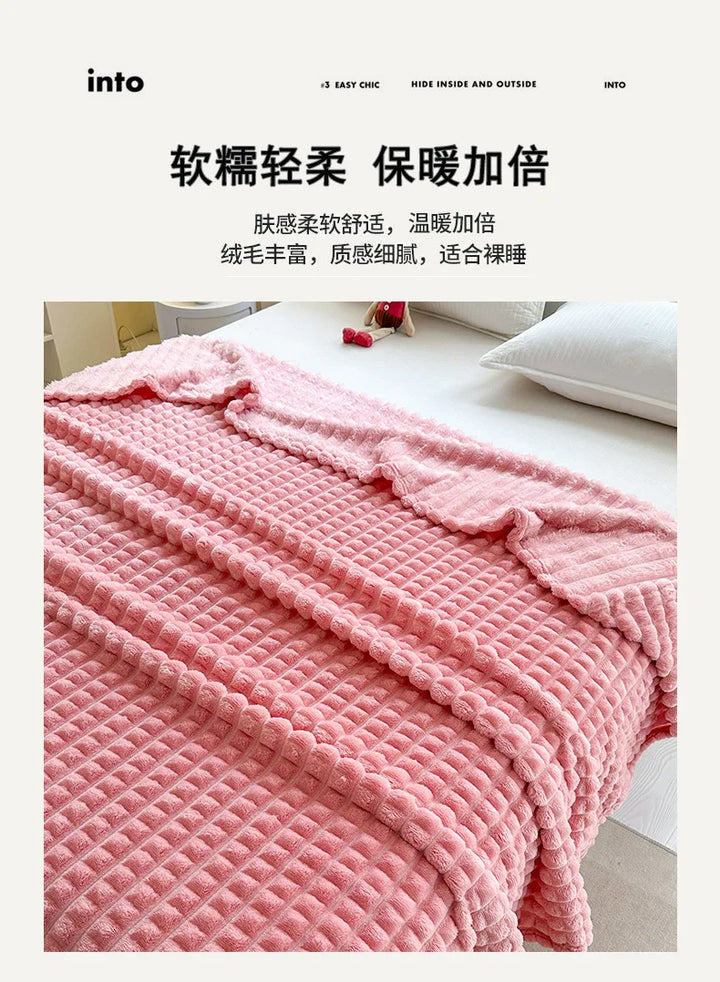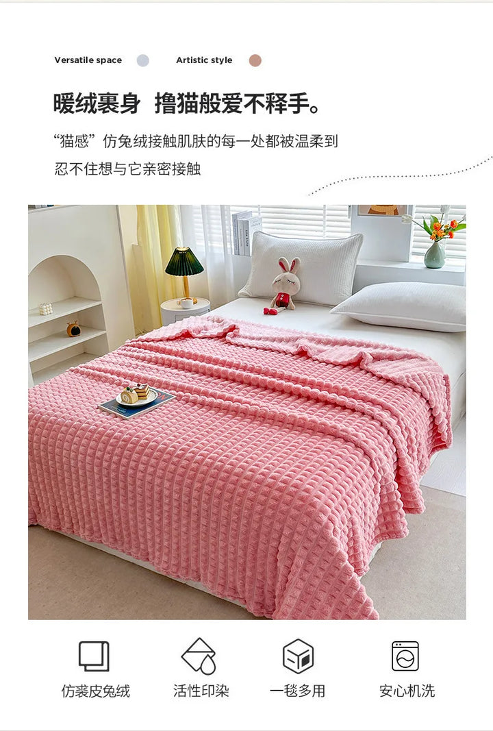 2025 new solid color imitation fur plaid flannel blanket winter office nap blanket air conditioner blanket