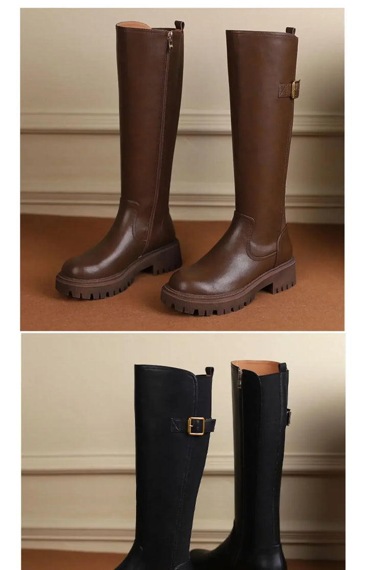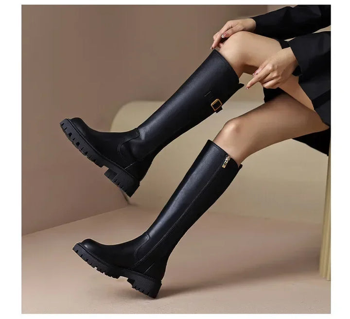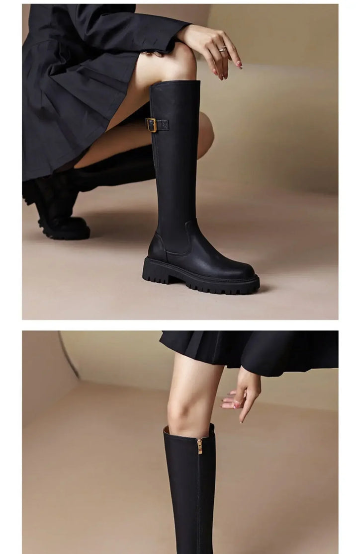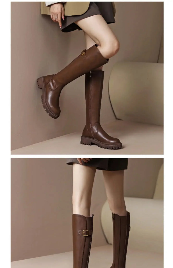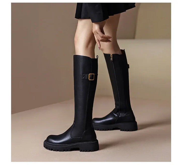 2025 Platform Women Knee Chunky Heels Boots Fashion Belt Buckle Knight Long Booties Autumn Winter Female Thick Heel Shoes