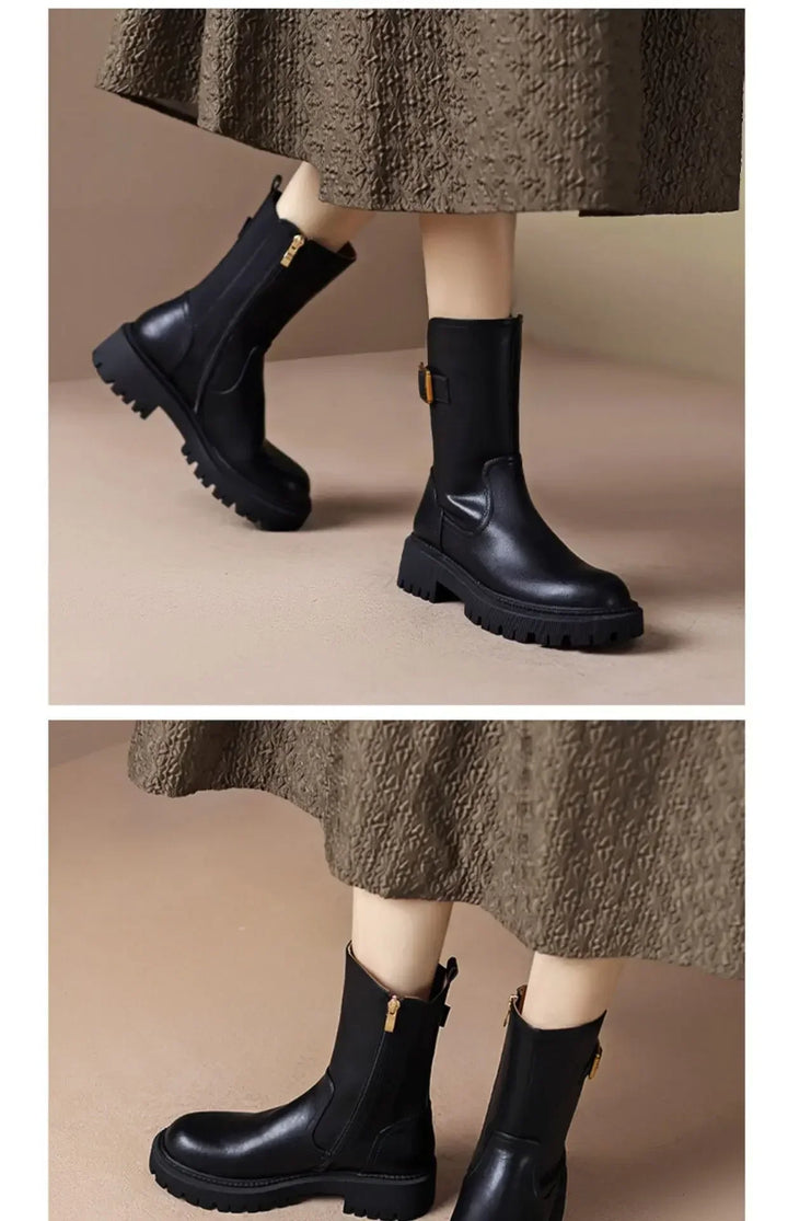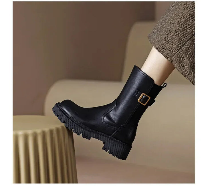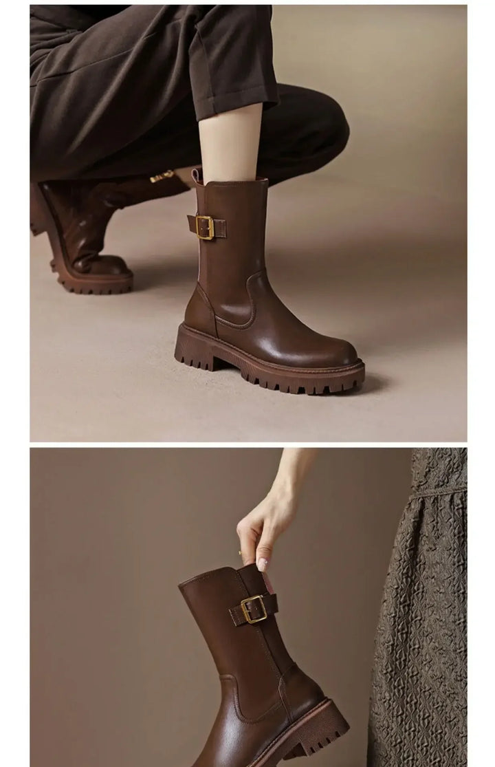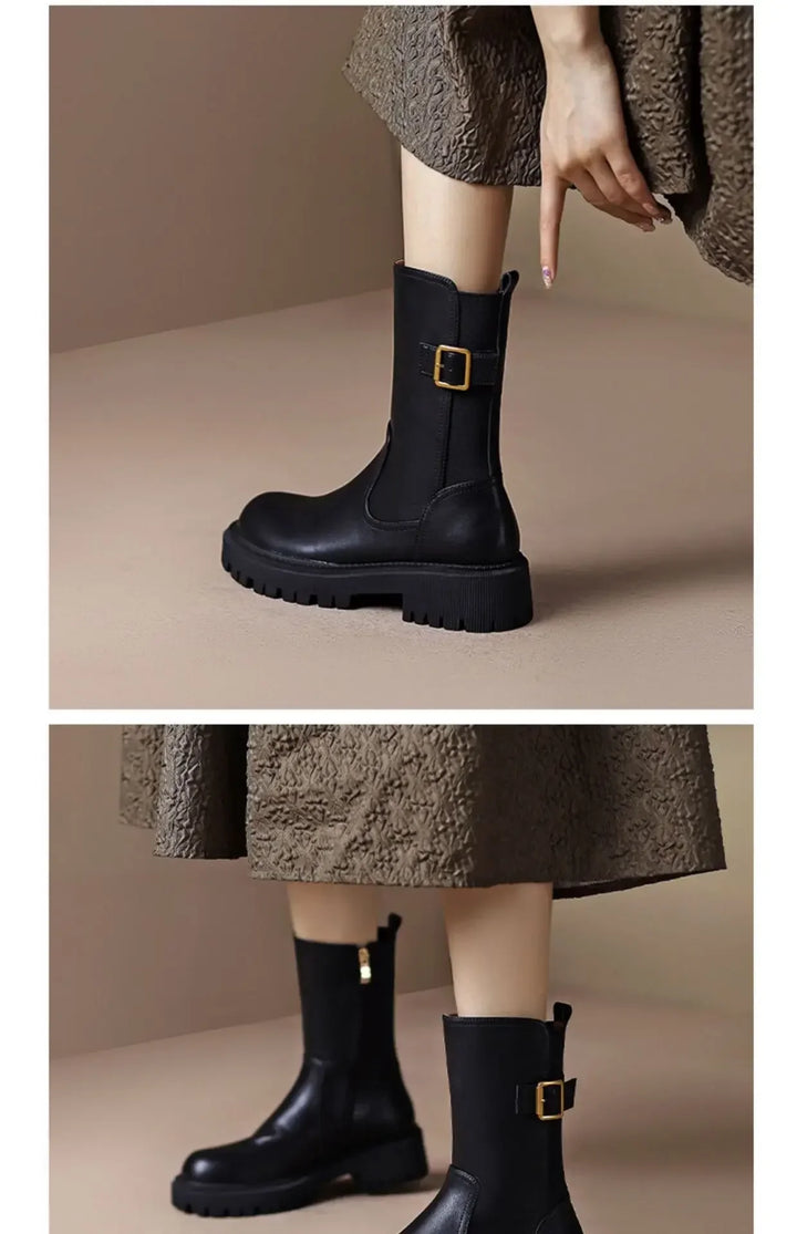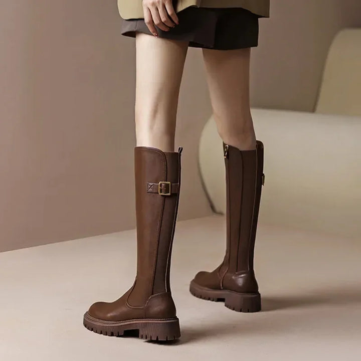 2025 Platform Women Knee Chunky Heels Boots Fashion Belt Buckle Knight Long Booties Autumn Winter Female Thick Heel Shoes