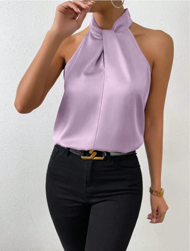 2025 Trendy Women's Halter Neck Tank Top Silky Sleeveless Blouse for Summer