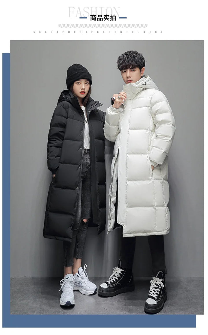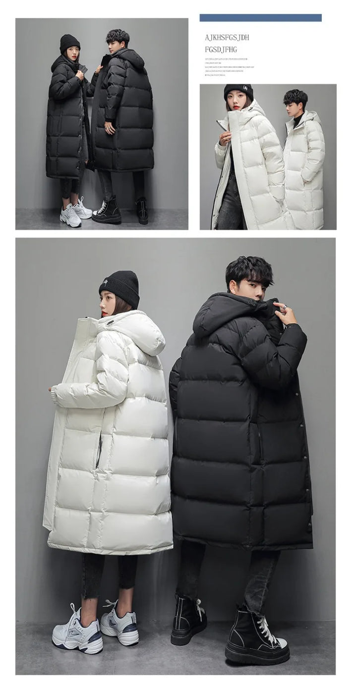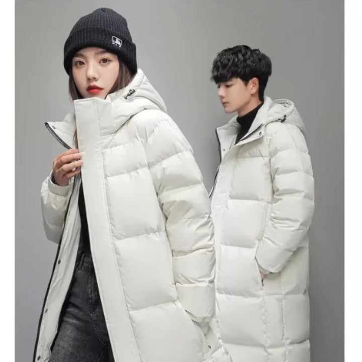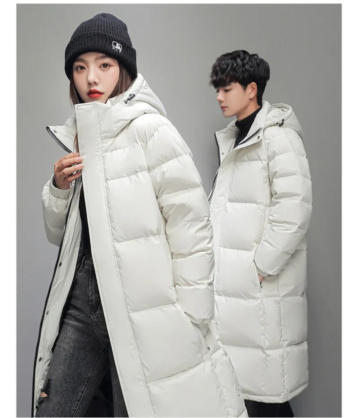 2025 Winter Down Jacket Fashion Brand New Men Korean Style Warm Hooded White Duck Down Outwear Men's Couple Winter Coat