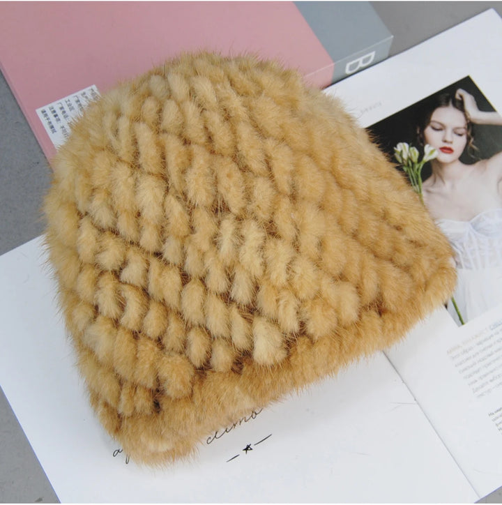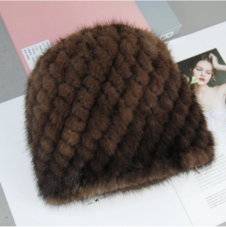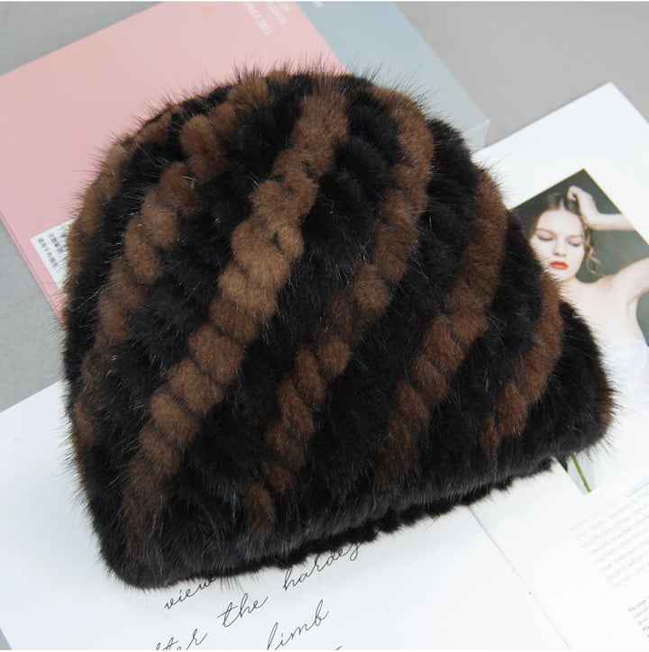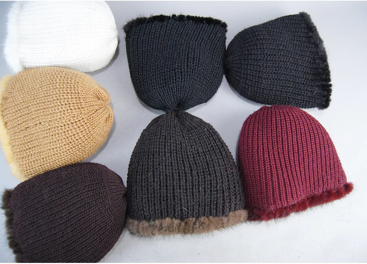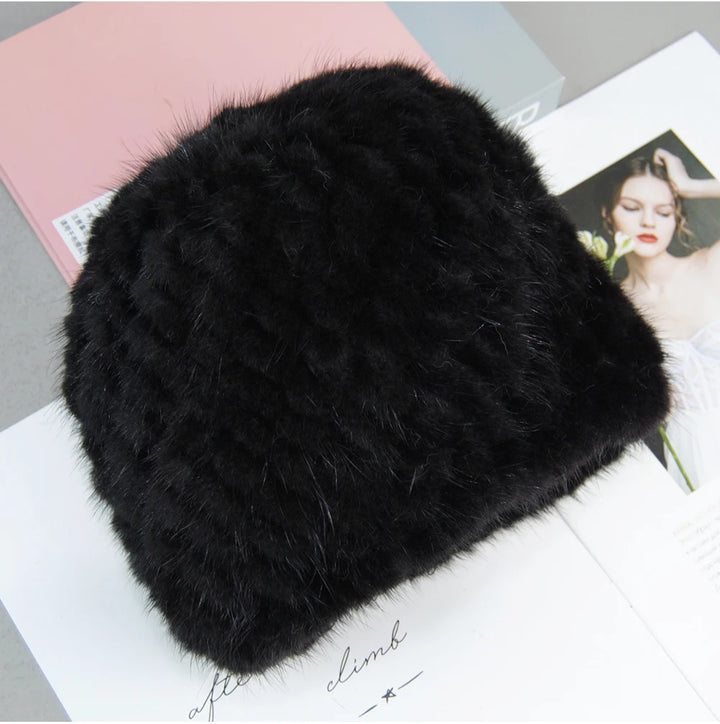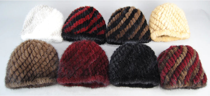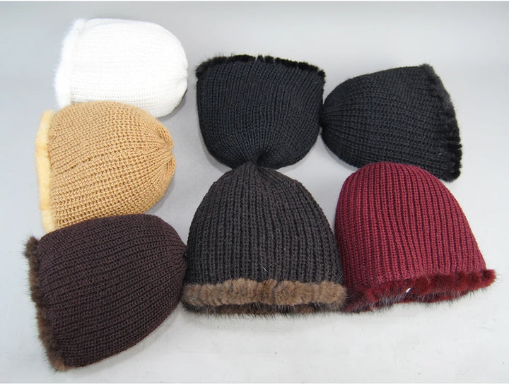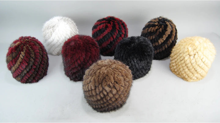2025 Winter Womens Mink Fur Hats Natural Real Fur Knitted Cap Fashionable Fluffy Ladies Genuine Fur Beanie Female Black Fur Caps