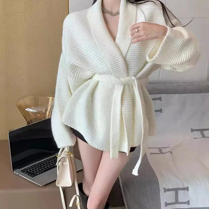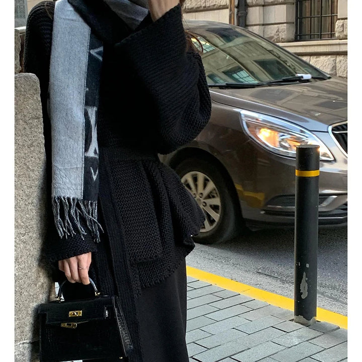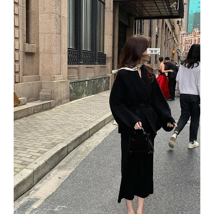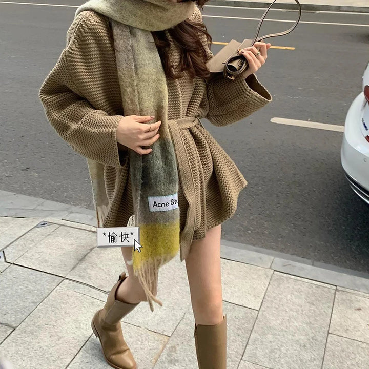 2025 Woman Autumn And Winter Sweater Coat Loose Fashion Commuting Long V-neck Knit Cardigan Thick Long Sleeve Coat