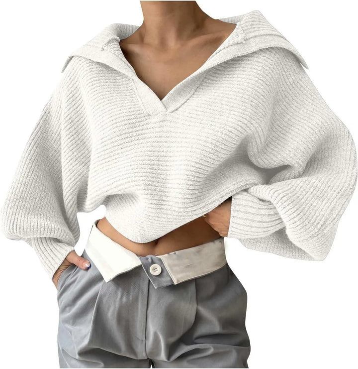 2025 Women Sweaters Lantern Sleeve Turn-Down Collar Loungewear Pullovers Autumn Winter Loose Fit Solid Streetwear Dropshipping