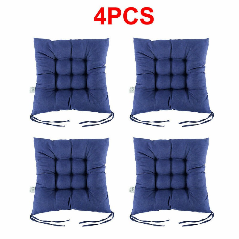 4 Pack Seat Pad Dining Room Garden Kitchen Chair Seat Cushions Tie On Plain UK