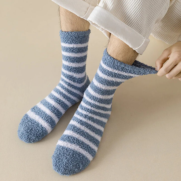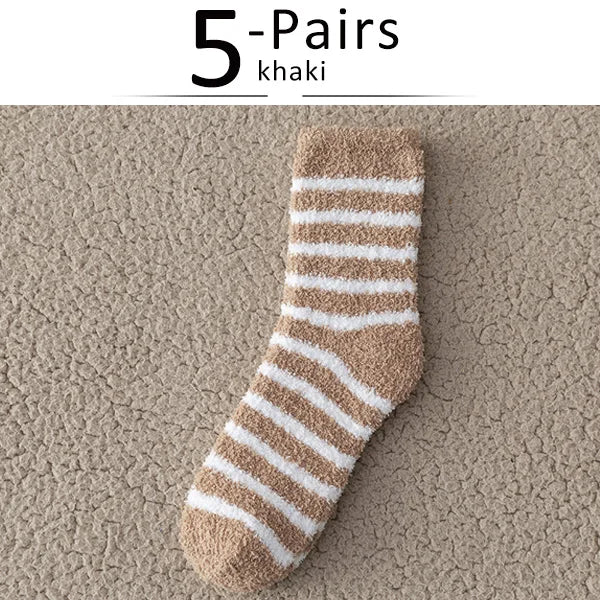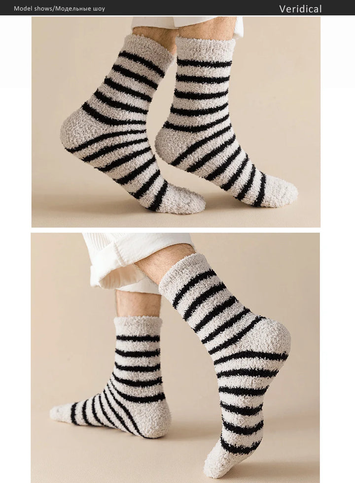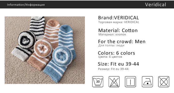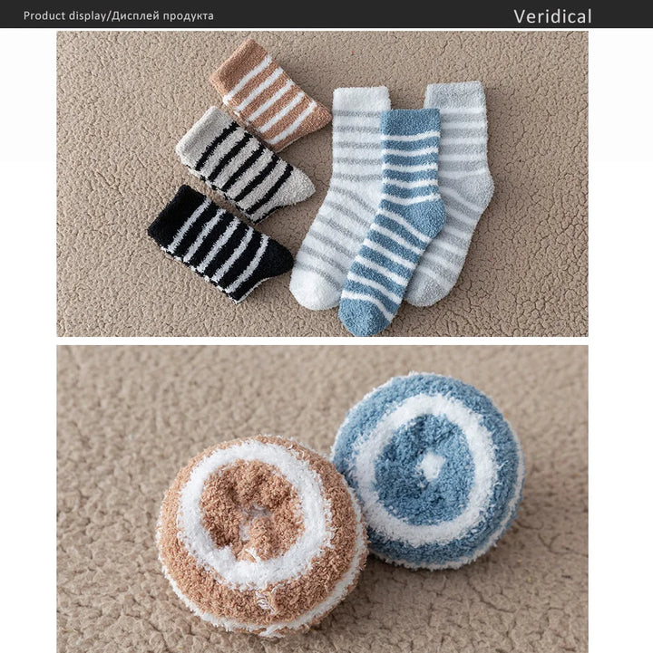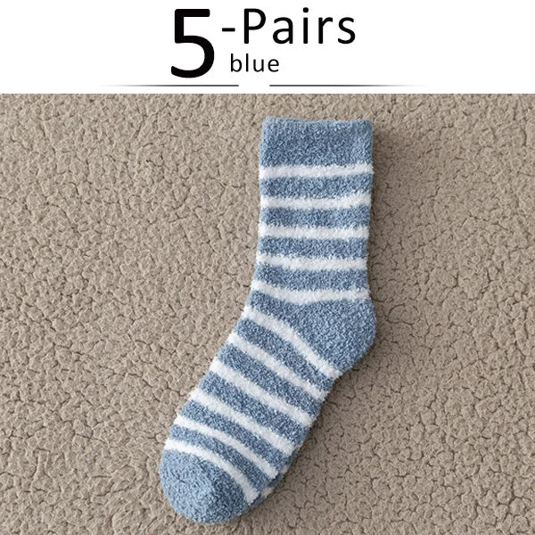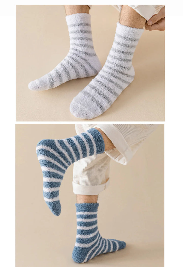 5 Pairs Thick Mens Thermal Socks Winter Warm Striped Coral Fleece Fluffy Solid Color Sleep Male Bed Socks Calcetines Hot Sell