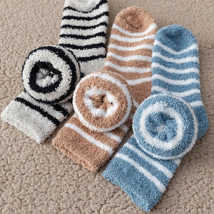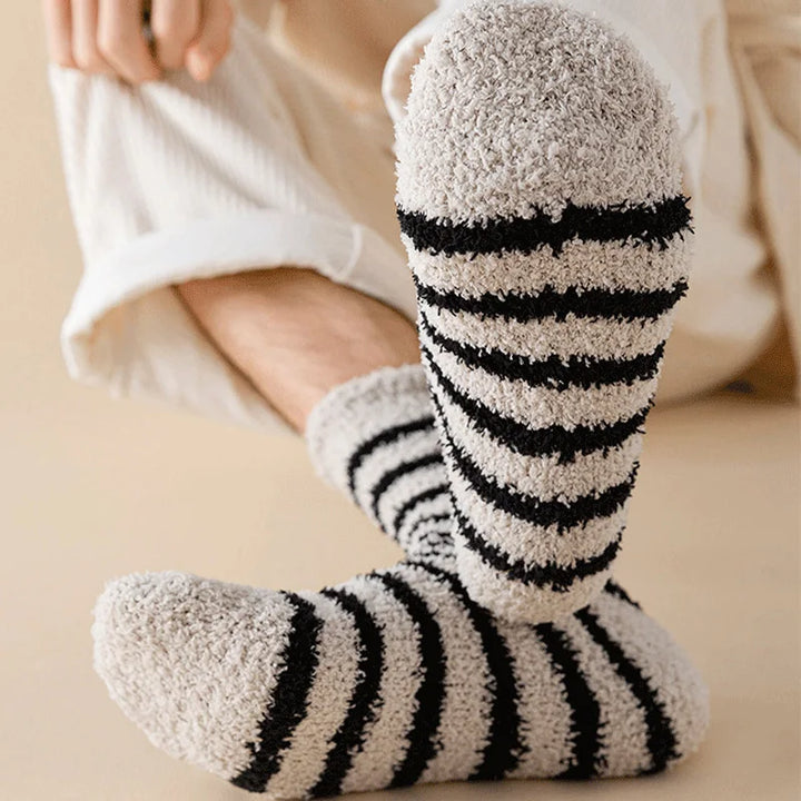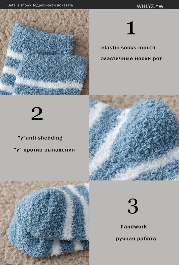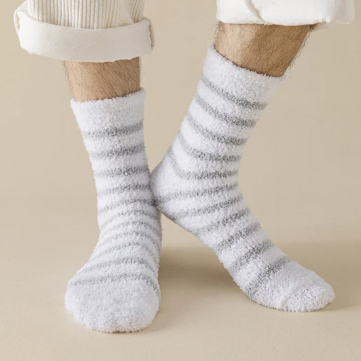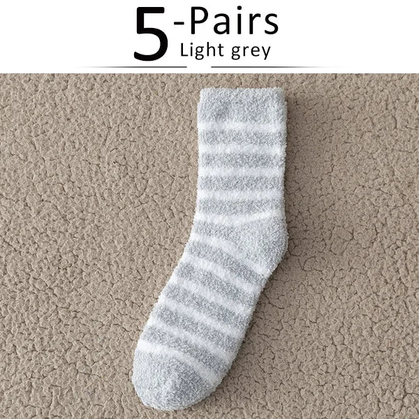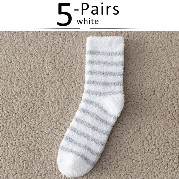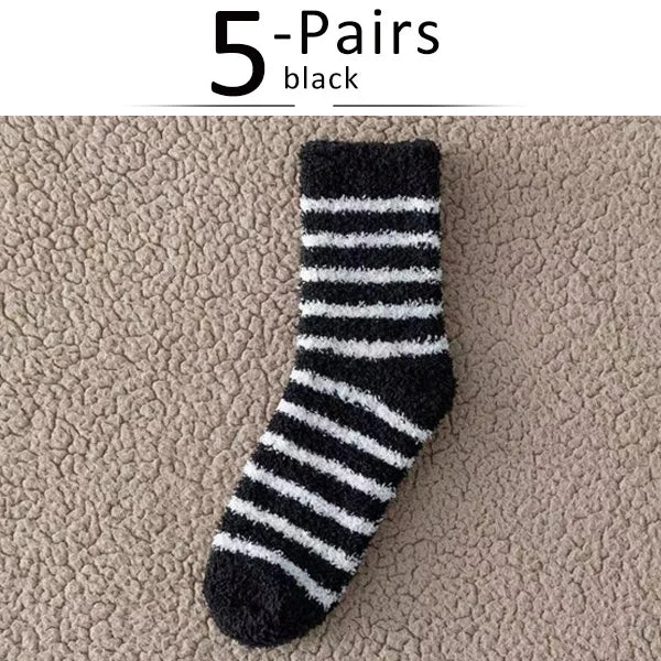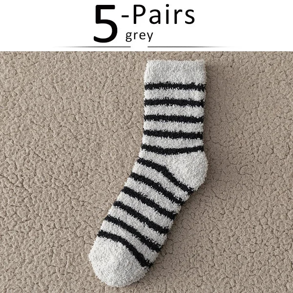5 Pairs Thick Mens Thermal Socks Winter Warm Striped Coral Fleece Fluffy Solid Color Sleep Male Bed Socks Calcetines Hot Sell