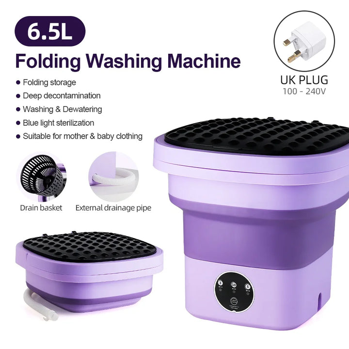 6.5L Small Folding Washing Machine Portable Washing Machine Automatic Modes Laundry Clothes Laundry Bucket Washing Machine