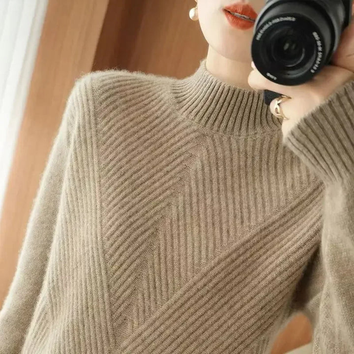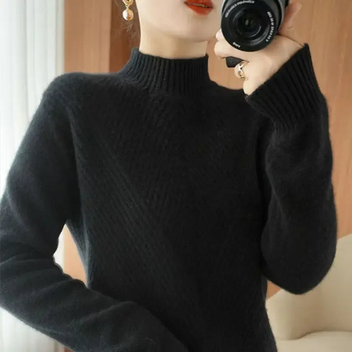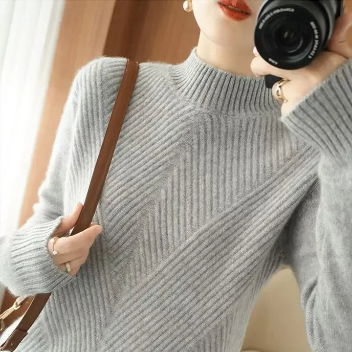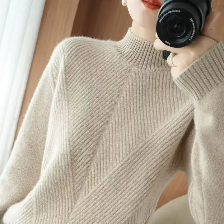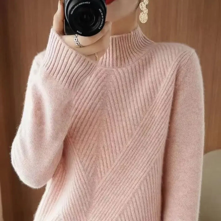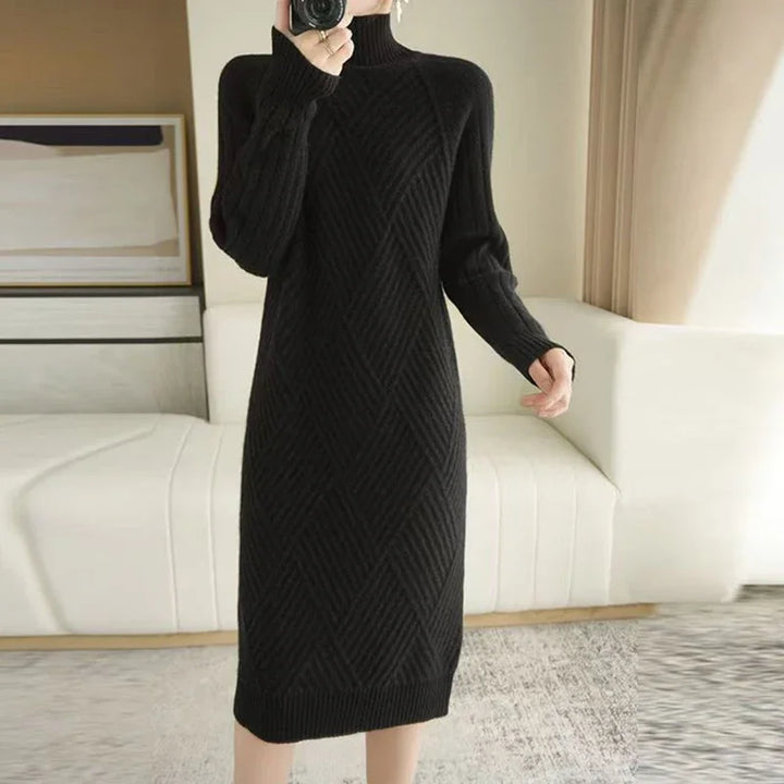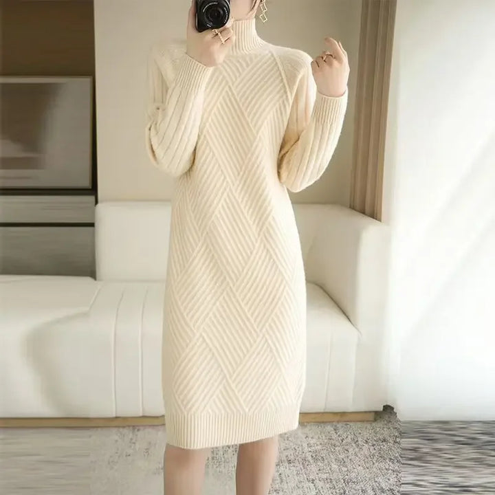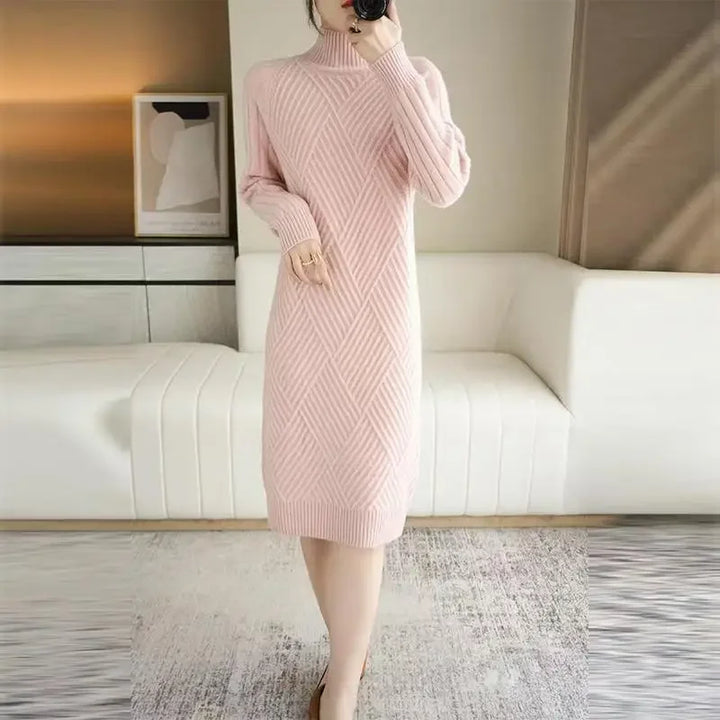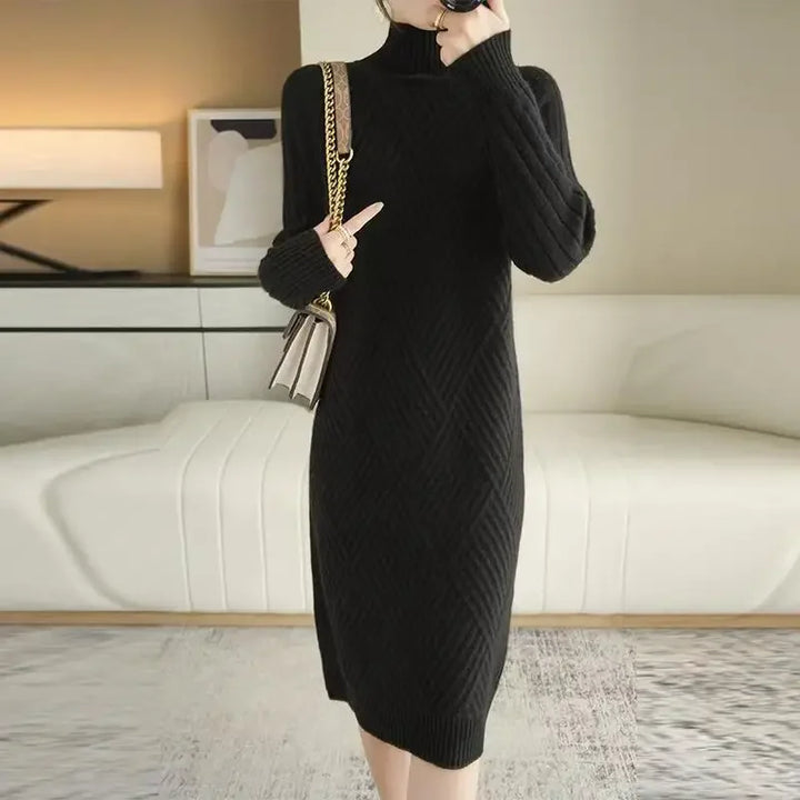 Abrini Autumn Winter Women Wool sweater Dress Mock Neck Ribbed Solid Knit Dresses Elegant Lady Party Bottoming Cashmere Vestidos