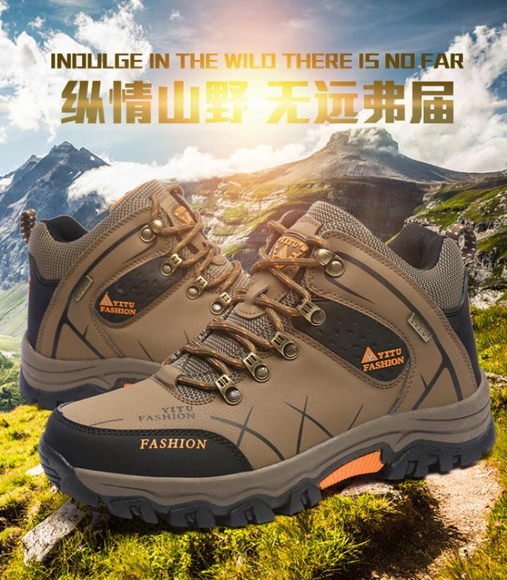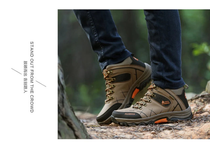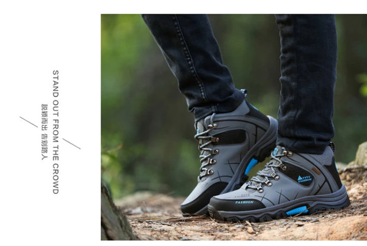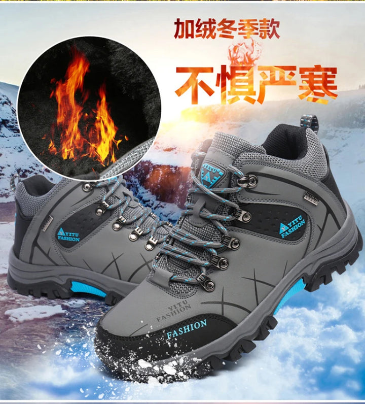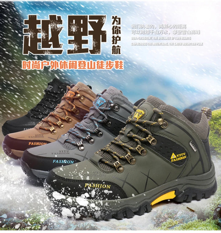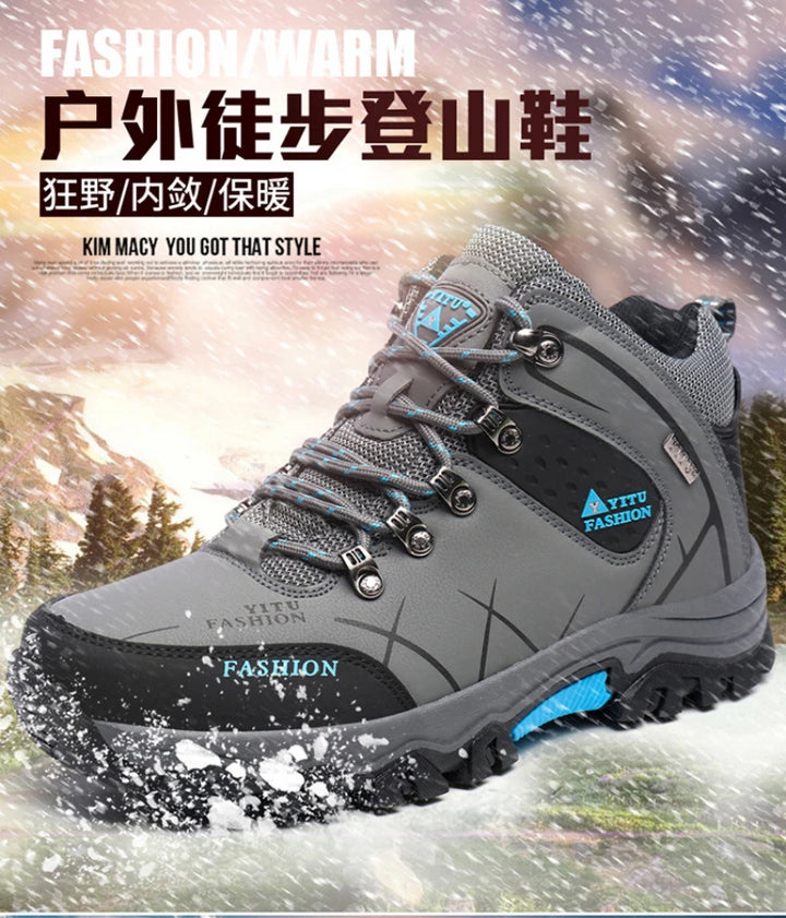 Autumn And Winter Men's Shoes Hiking Shoes Cotton Shoes High-Top Leather Surface Plus Velvet Thickened Warm Large Size Outdoor