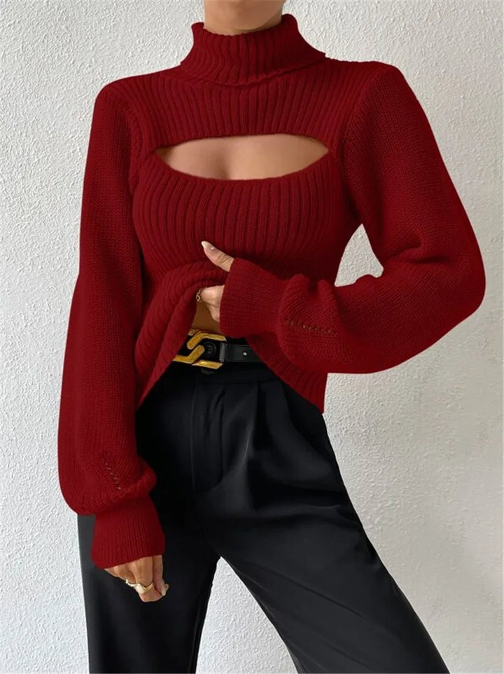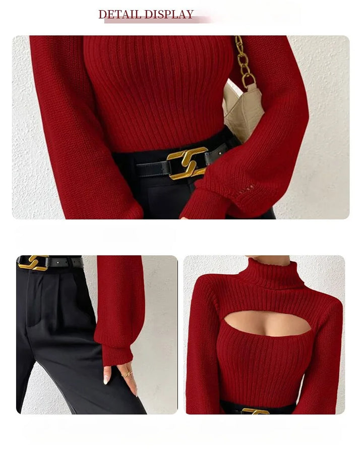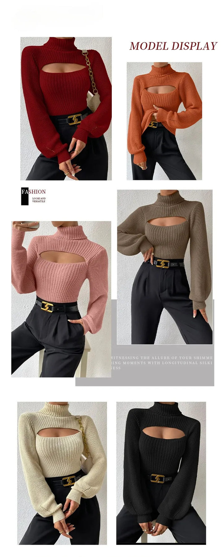 Autumn and Winter Sweater Sexy Loose Versatile High Neck Hollow Breast Leakage Sweater Women