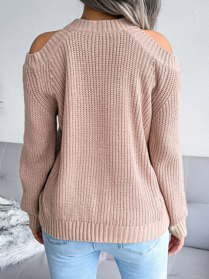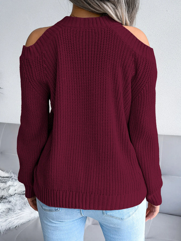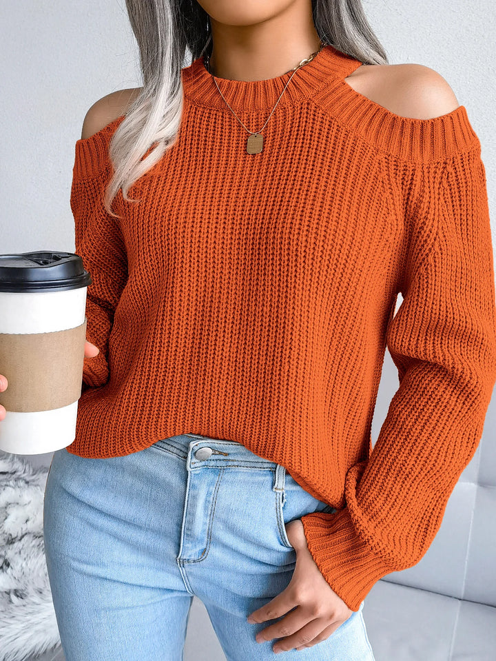 Autumn Winter Casual Solid Color Crew Neck Off Shoulder Long Sleeve Knitted Pullover For Women Sweater Top