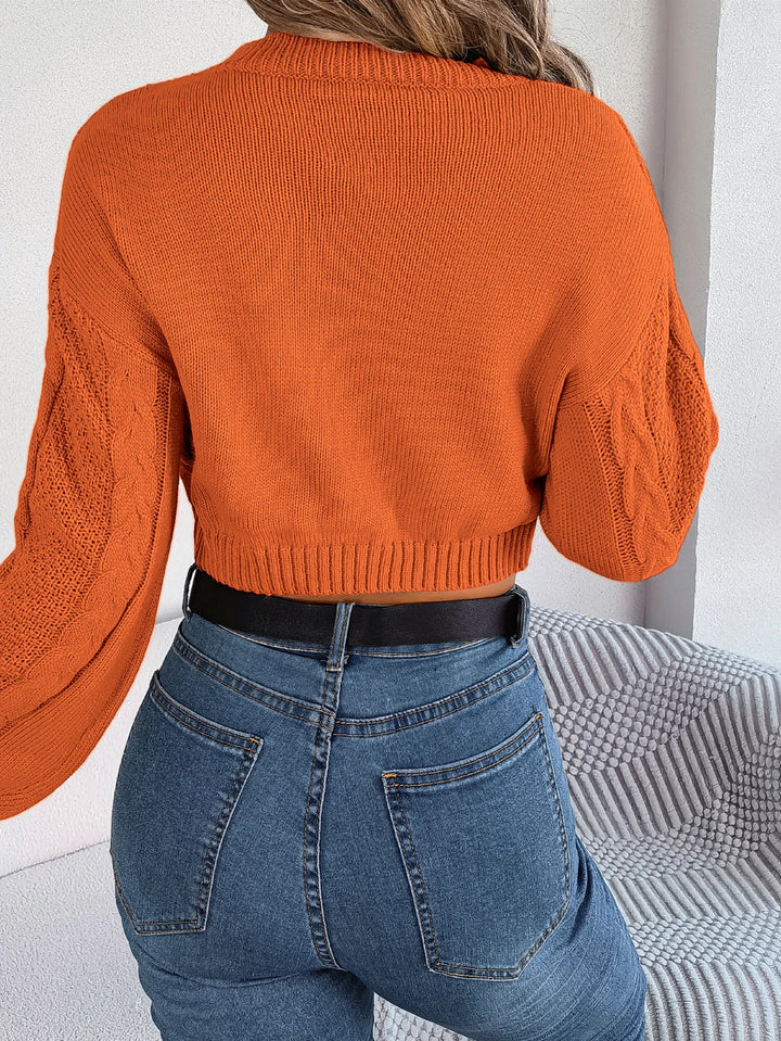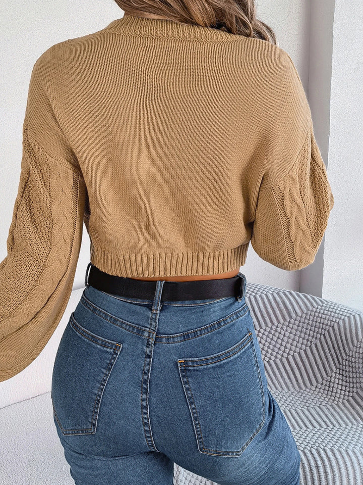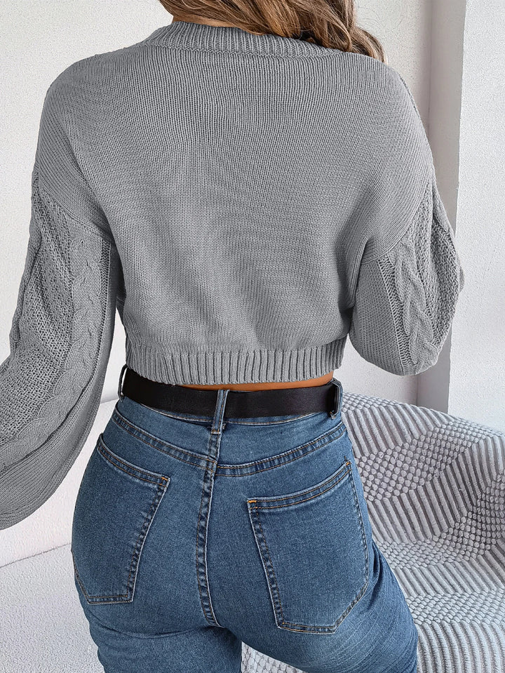 Autumn Winter Solid Short Sweater Casual Knitted Long Sleeve Pullover Women Clothing Crop Top Gray Army Green Red