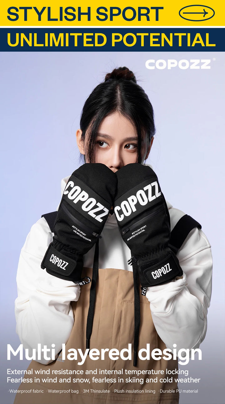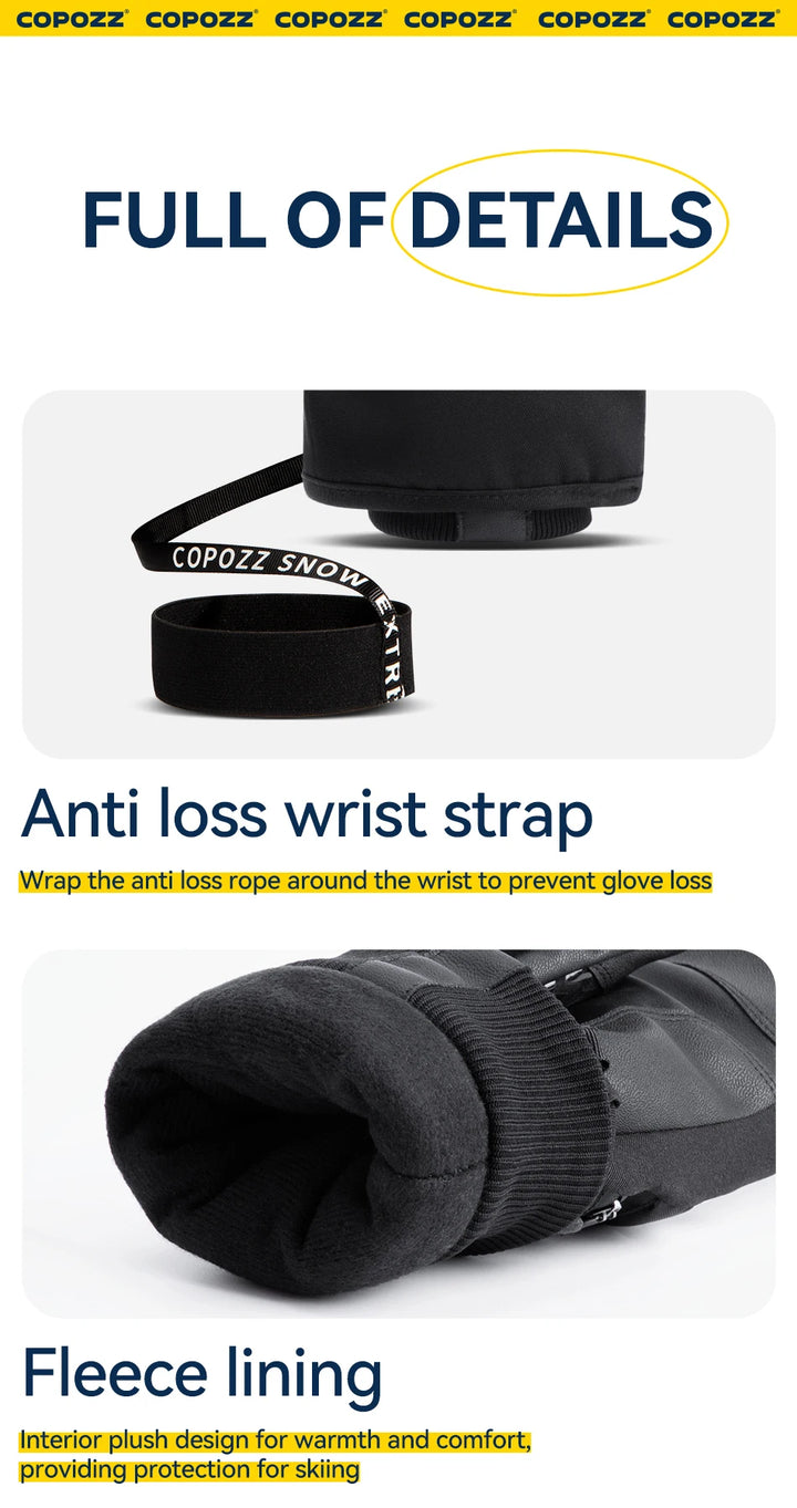 COPOZZ New Upgrade Thicken Ski Gloves Winter Men Women 3M Thinsulate Thermal Snowboard Gloves Waterproof Warm Mittens Ski Gloves