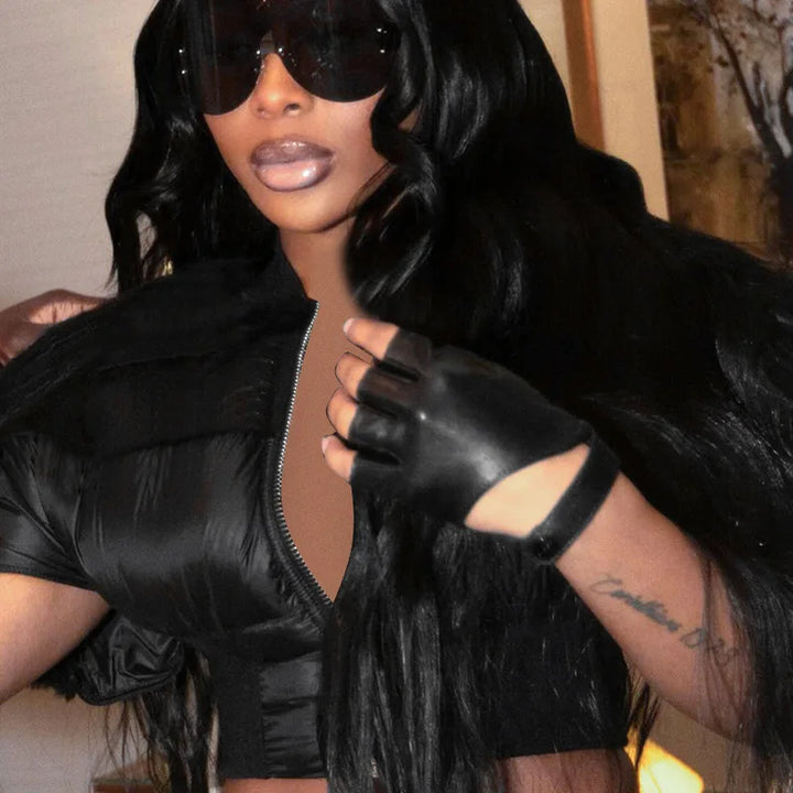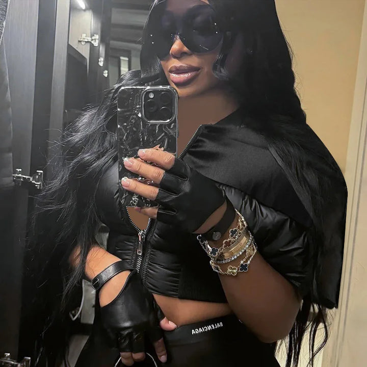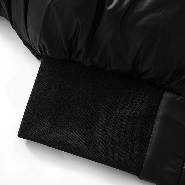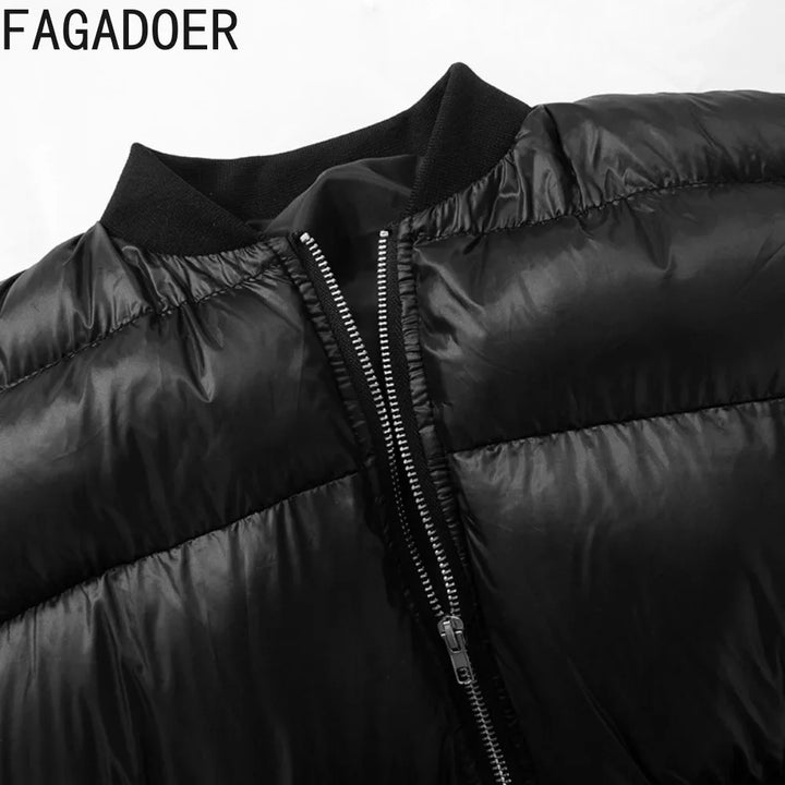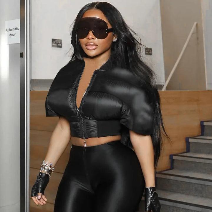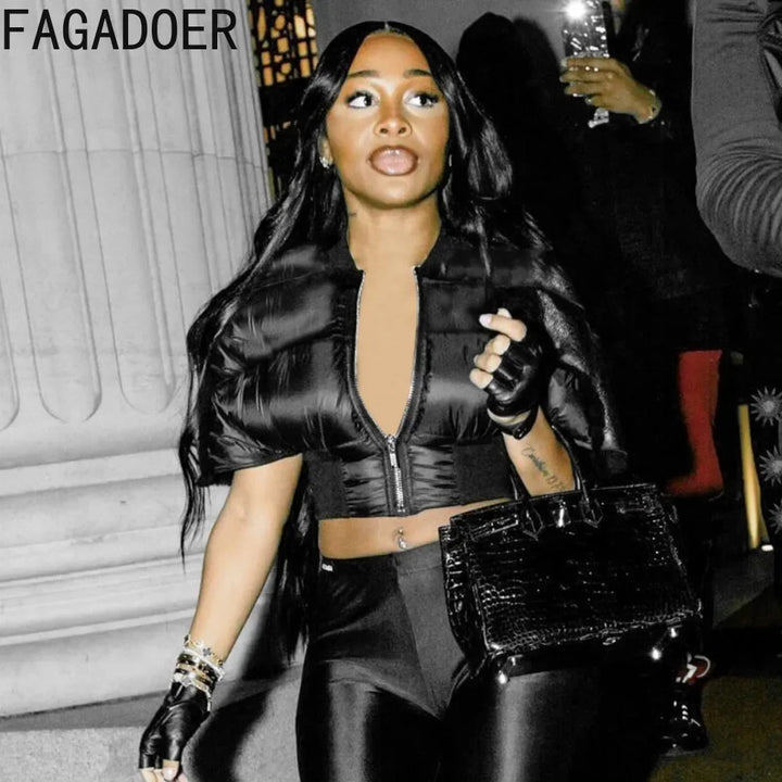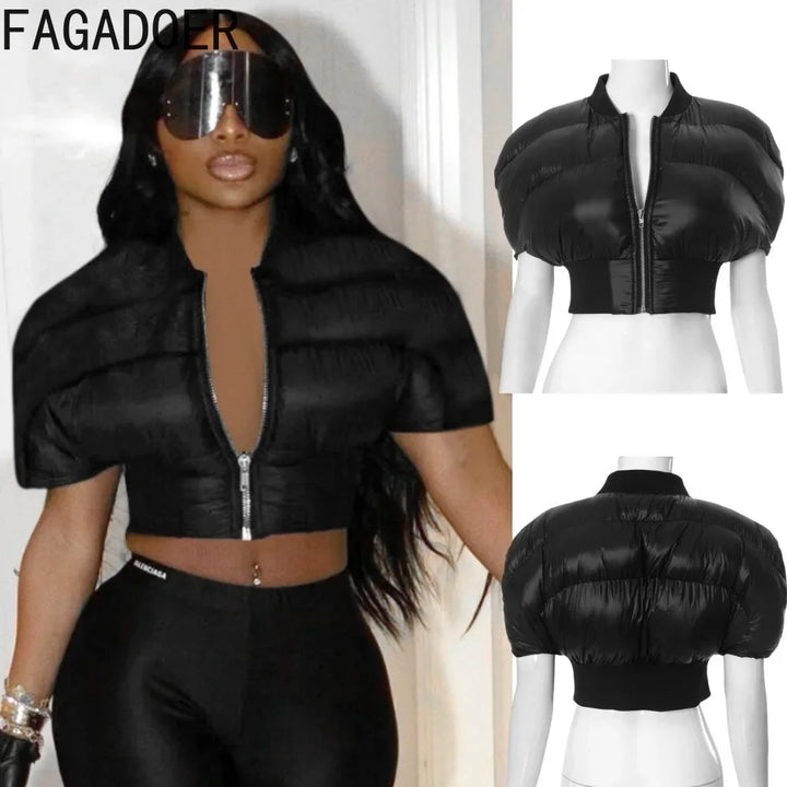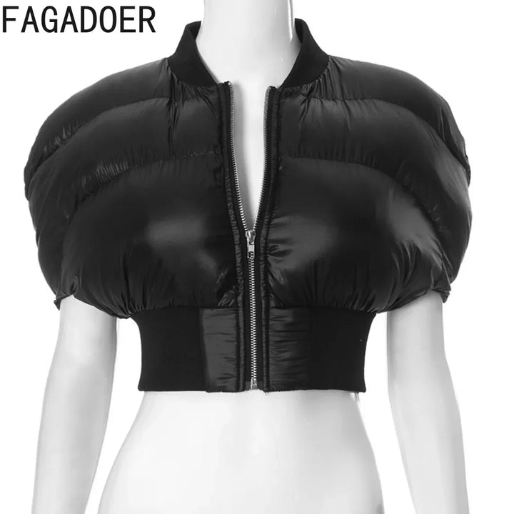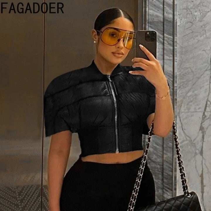 FAGADOER Black Puffer Jacket Autumn Winter Clothes Sexy Y2K Cropped Bubble Jackets Zip Up Short Sleeve Streetwear Coats Outcoat