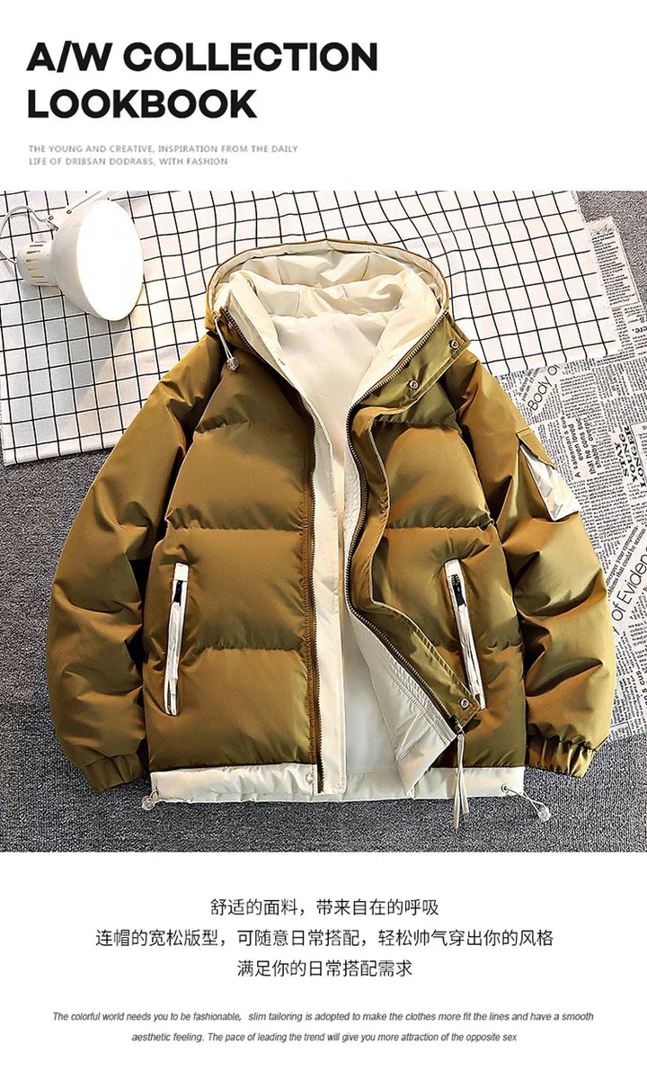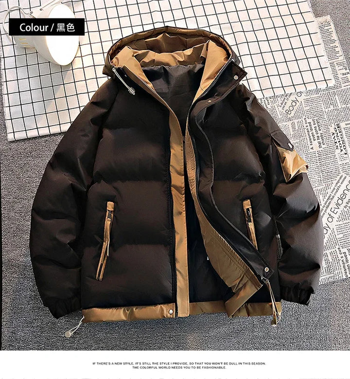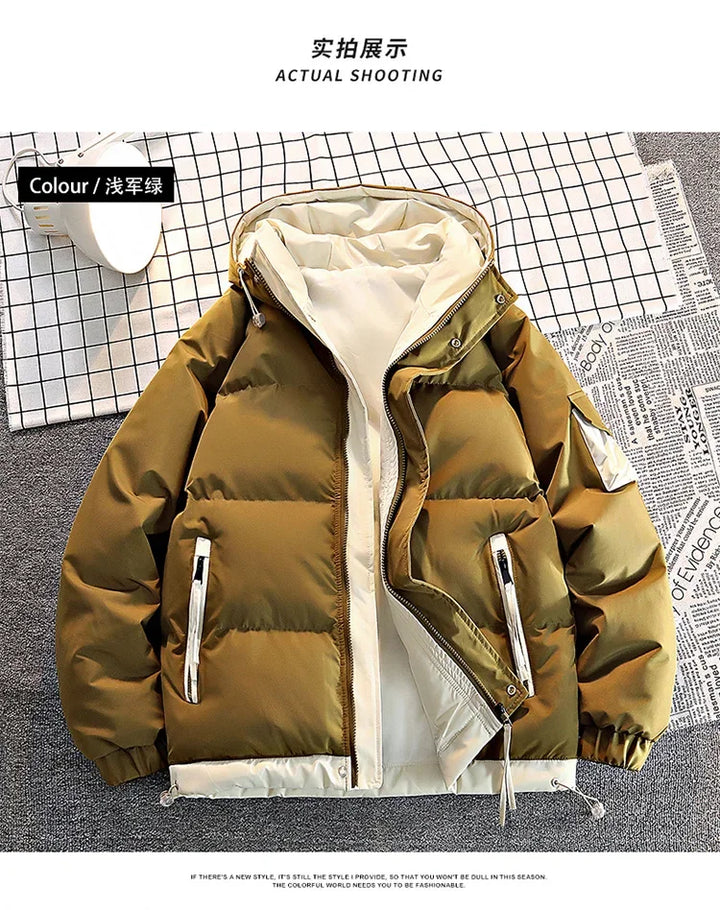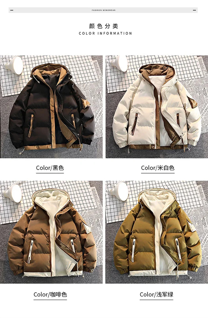 Fashion Men Casual Solid Color Hooded Parkas Male Black Khaki Warm Male Coat Padded Jacket Men Winter Parkas Thick Jacket Coats