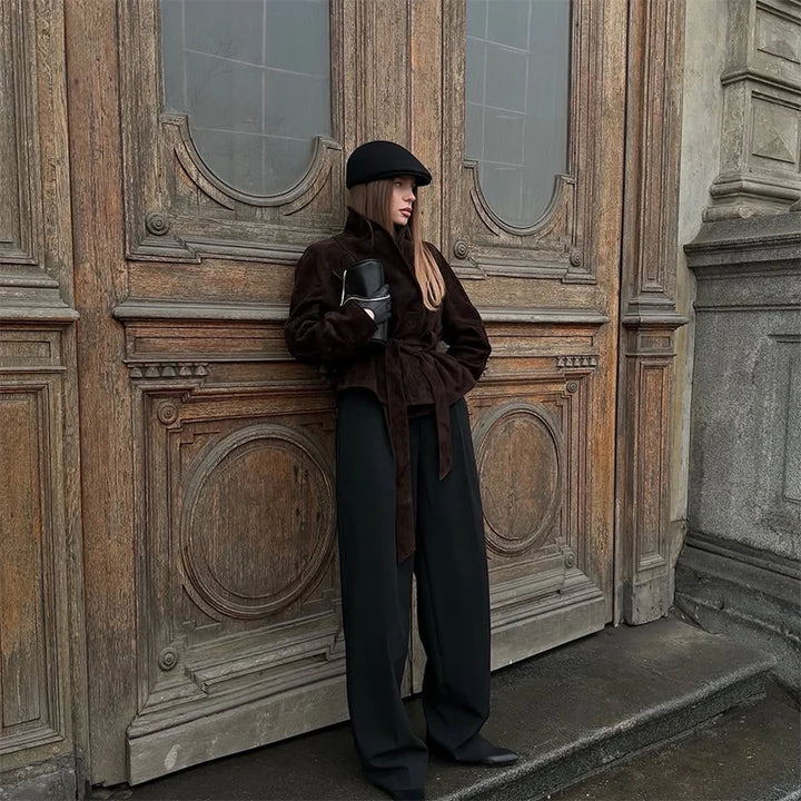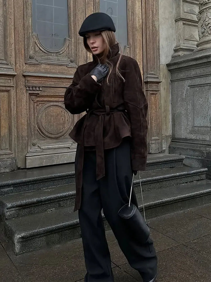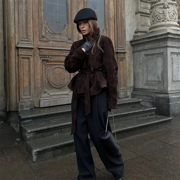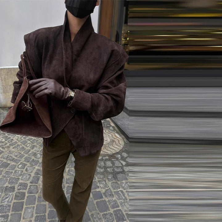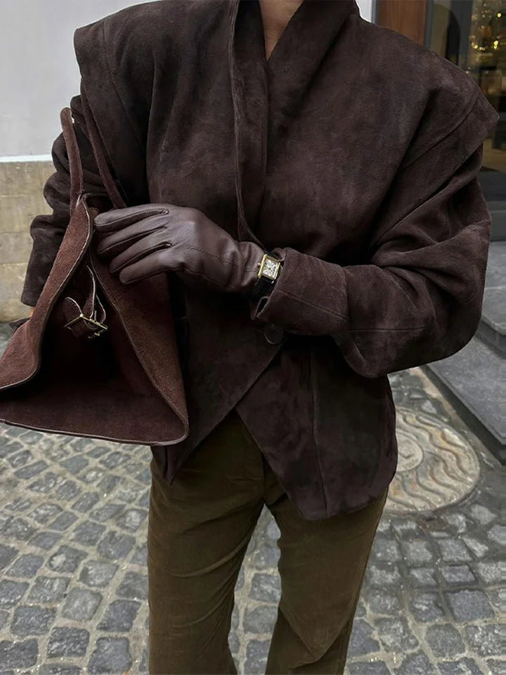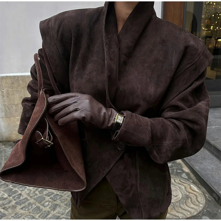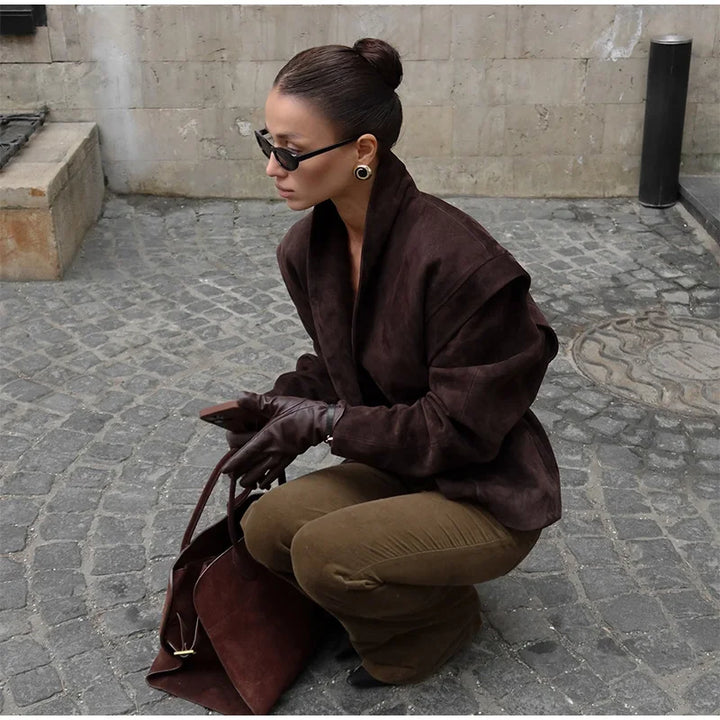 Fashion Suede Women's Jacket Turn-down Collar Long Sleeve Loose Female Coat 2025 Autumn Winter Lady Streetwear Retro Outwears