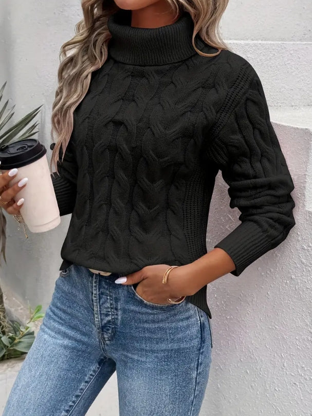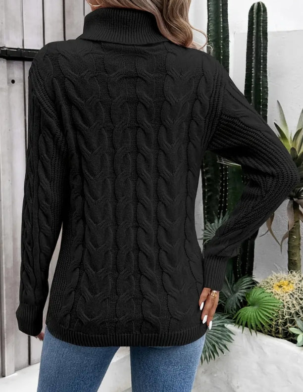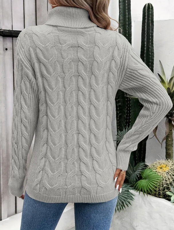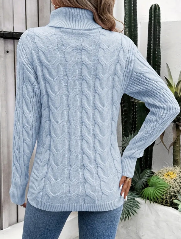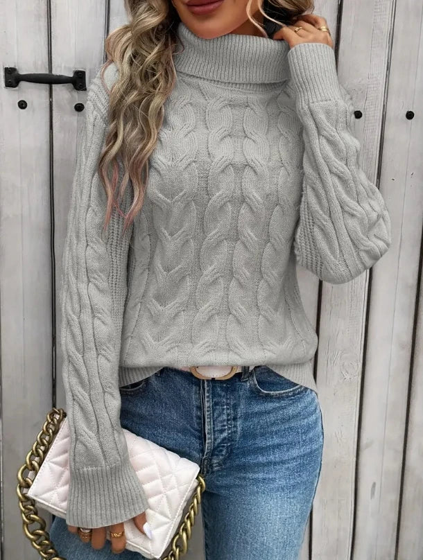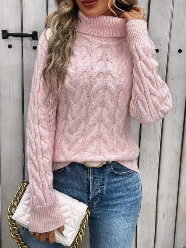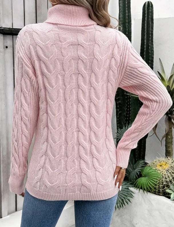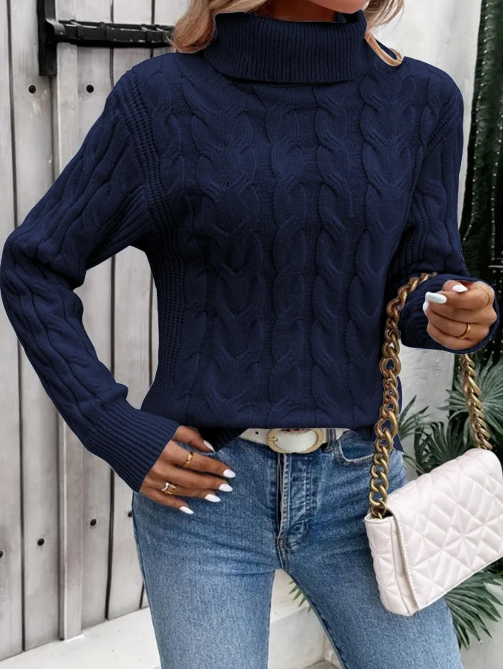 Fashionable autumn and winter solid color long sleeved high neck knitted sweater for women sweater women trends 2025 pullover