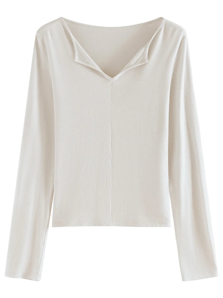 FSLE Autumn Knit Top 2025 New Pullover Casual Long Sleeve Sweater For Women V-Neck Slim Cotton Grey Pullover Beige Chi Topc