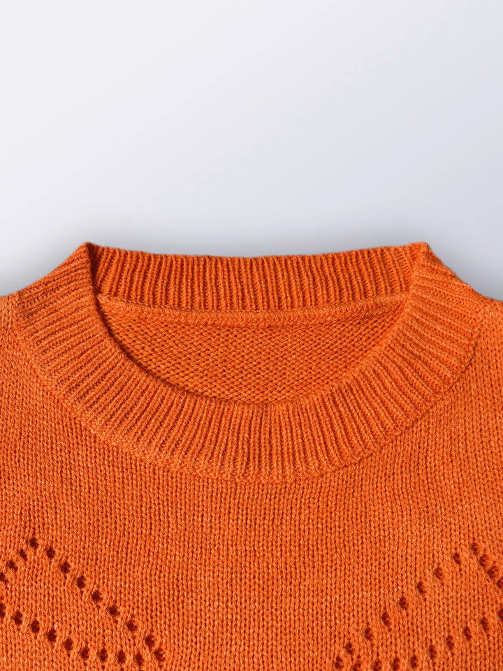 Halloween Women's Casual Autumn Winter 2025 Elegant Solid Color Pumpkin Pattern Long Sleeved Pullover Sweater