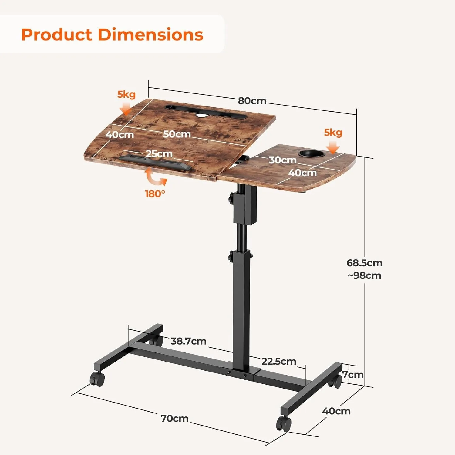 Height Adjustable Rolling Laptop Desk Over-bed Table with 2 Tilting Desktops, Mobile Bedside Sofa Side Table Standing Desk