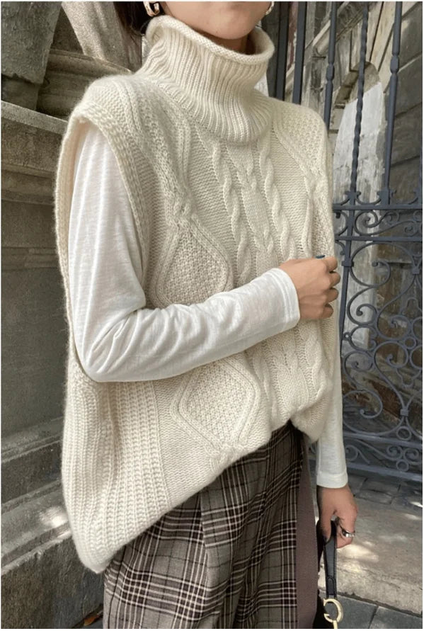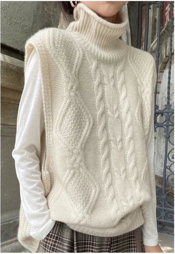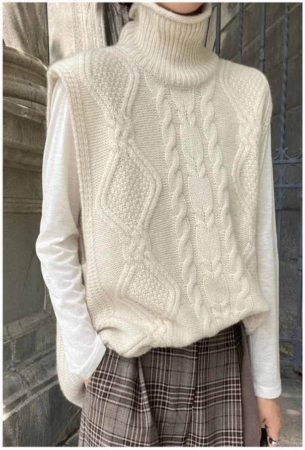 High-necked knitted vest women fall/winter 100% pure cashmere vest heavy industry new twisted vest fashion.