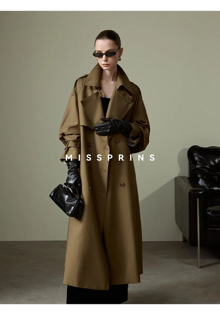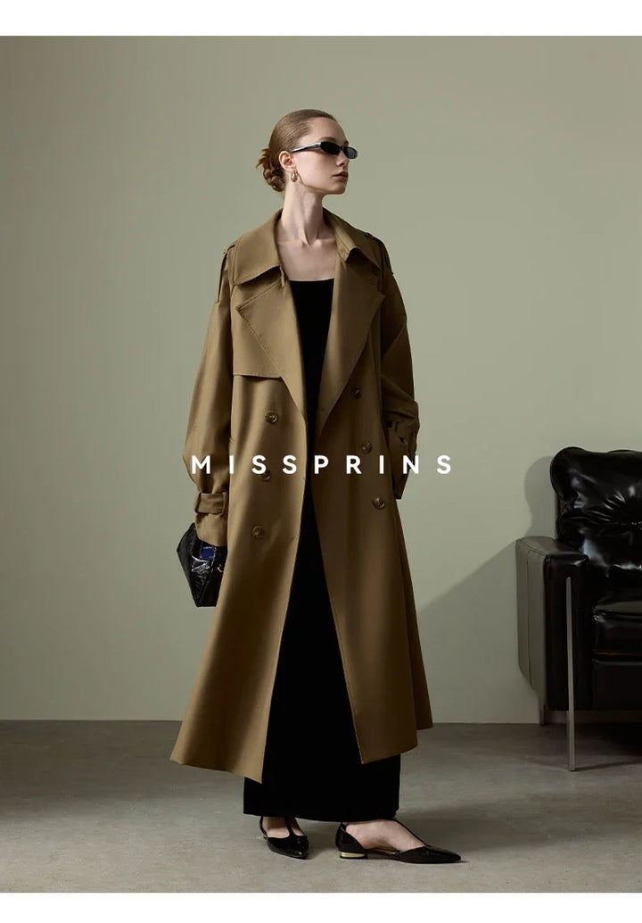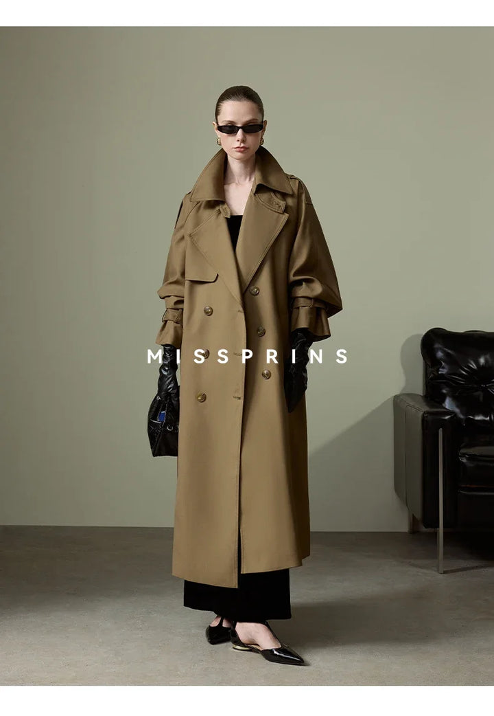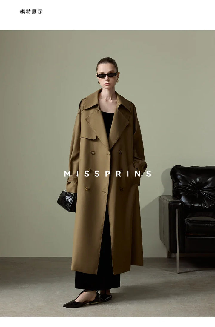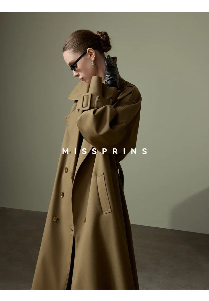 Lautaro Spring Autumn Long Khaki Trench Coat for Women Belt Double Breasted Chic Luxury Designer European Fashion Clothes 2025
