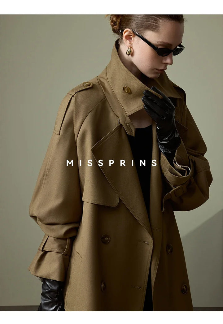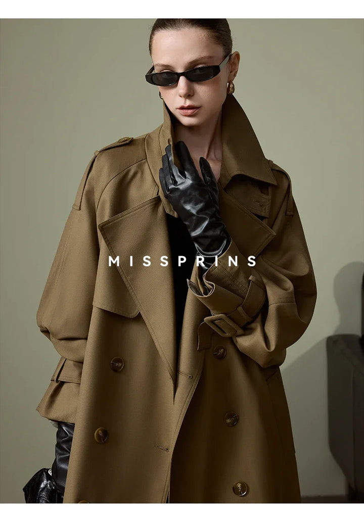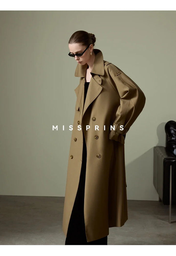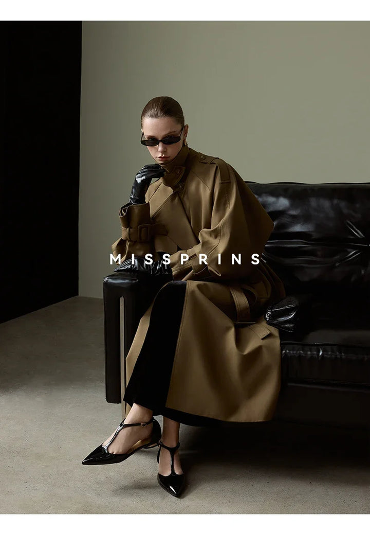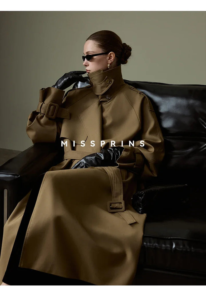 Lautaro Spring Autumn Long Khaki Trench Coat for Women Belt Double Breasted Chic Luxury Designer European Fashion Clothes 2025