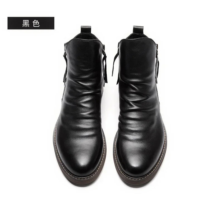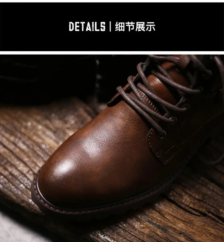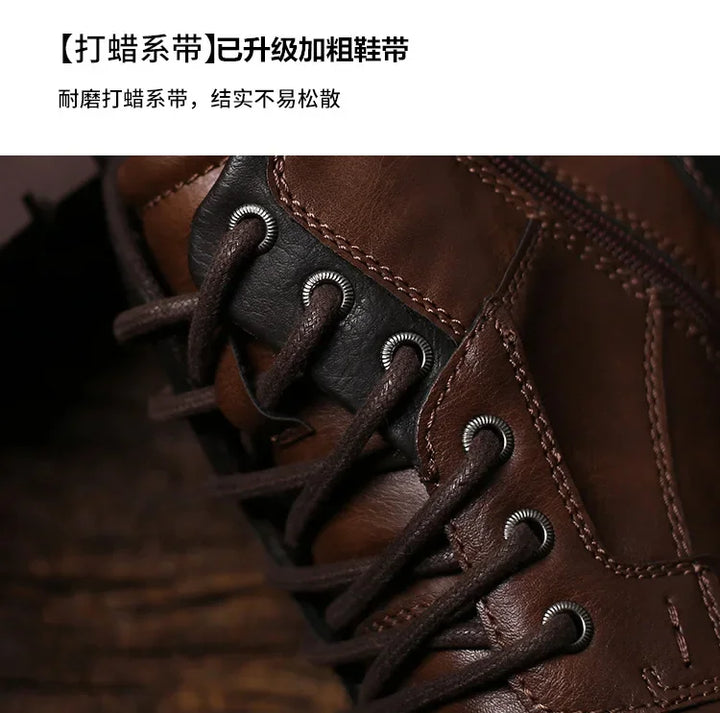 Leather Men Ankle Boots Plus Size High Top Shoes Outdoor Work Casual Shoes Motorcycle Military Combat Boots Fashion Autumn Brown