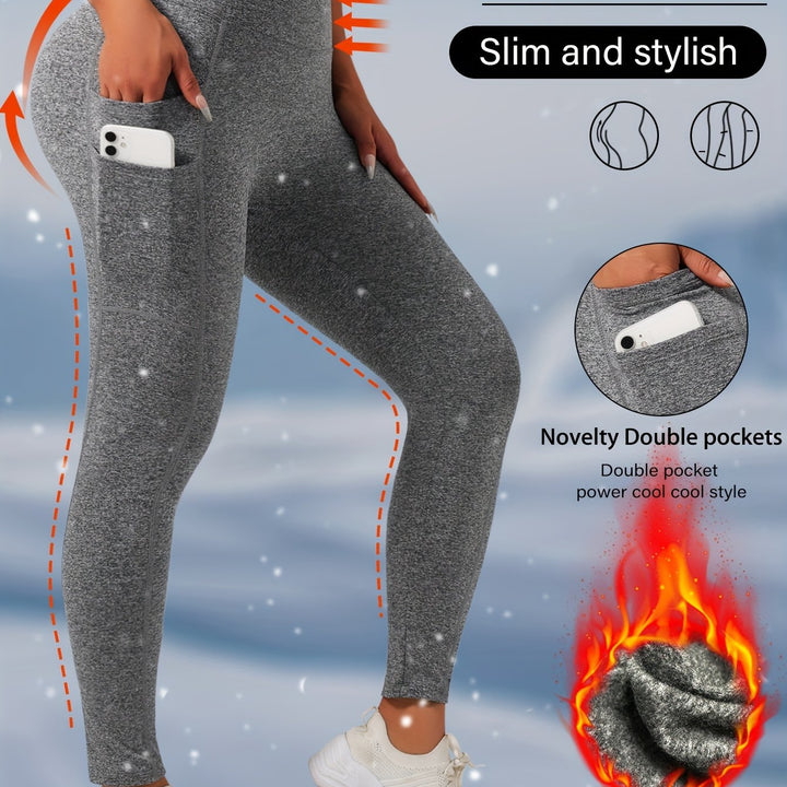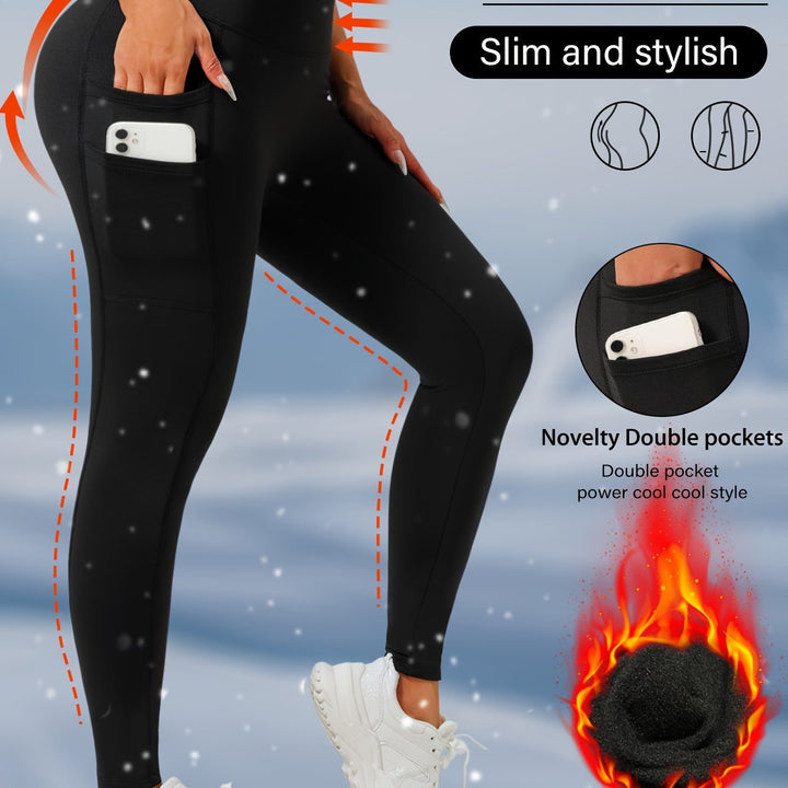 Luxurious High-Waist Winter Yoga Leggings - Soft Plush Lining, Ultra-Breathable, Four-Way Stretch Fabric, Thermal Insulation, Moisture-Wicking, Comfortable Fit - Perfect for Autumn and Winter Seasons, Outdoor Activities, and