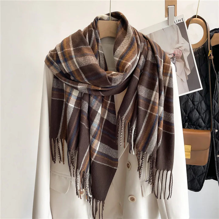 Luxury Brand Winter Plaid Women's Cashmere Scarf Warm Shawls and Wraps Thicked Wool Pashmina Female Blanket Scarves
