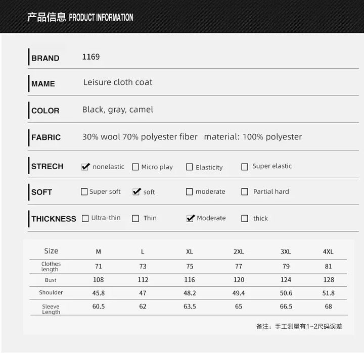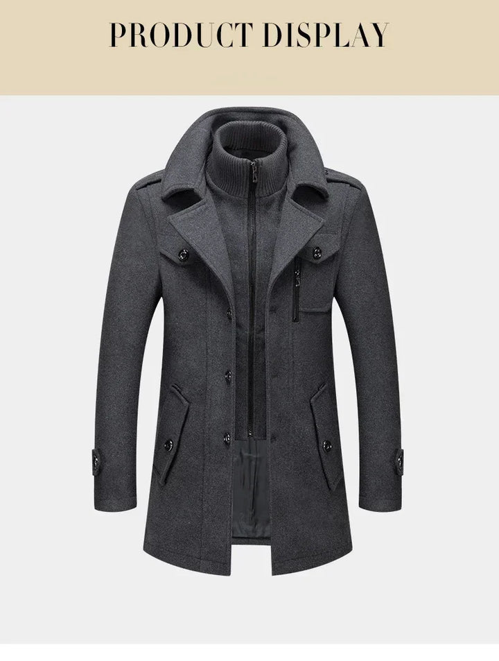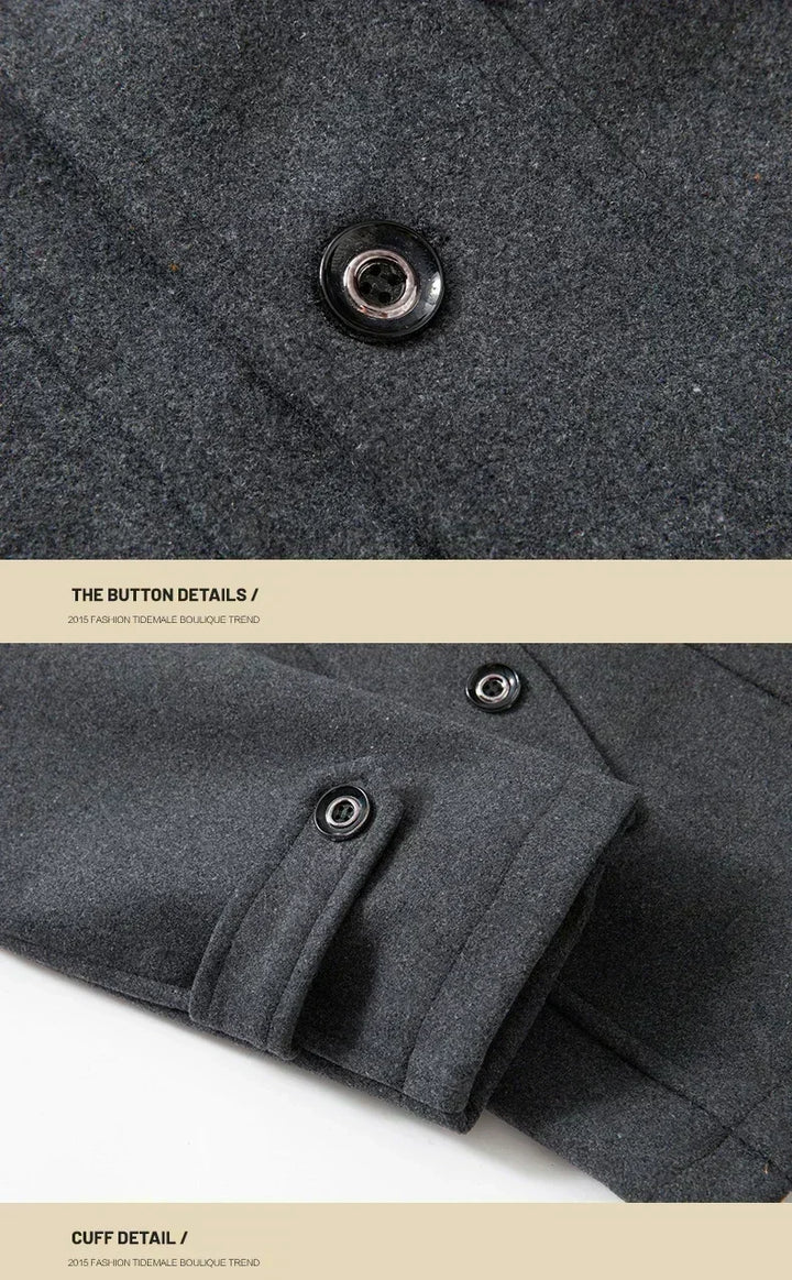 Men Fashion Autumn Winter Wool Trench Coats Fashion Middle Long Jacket Male Double Collar Zipper Coat Windbreak Woolen Overcoat