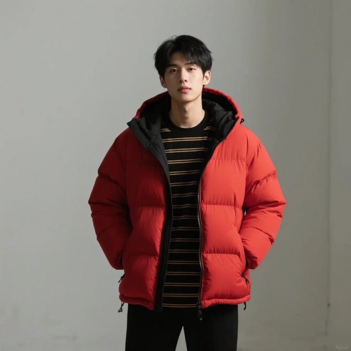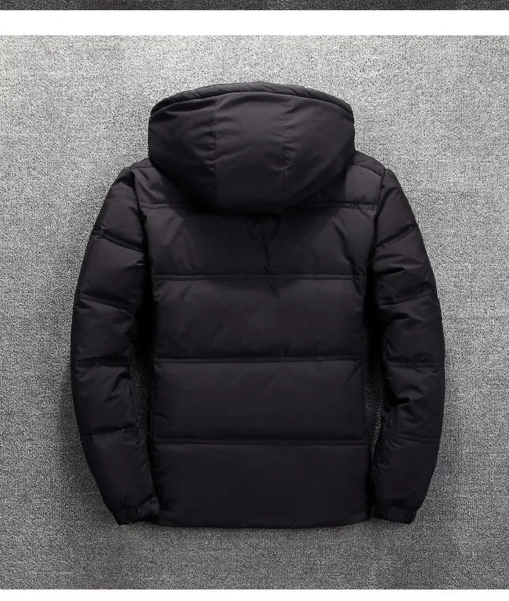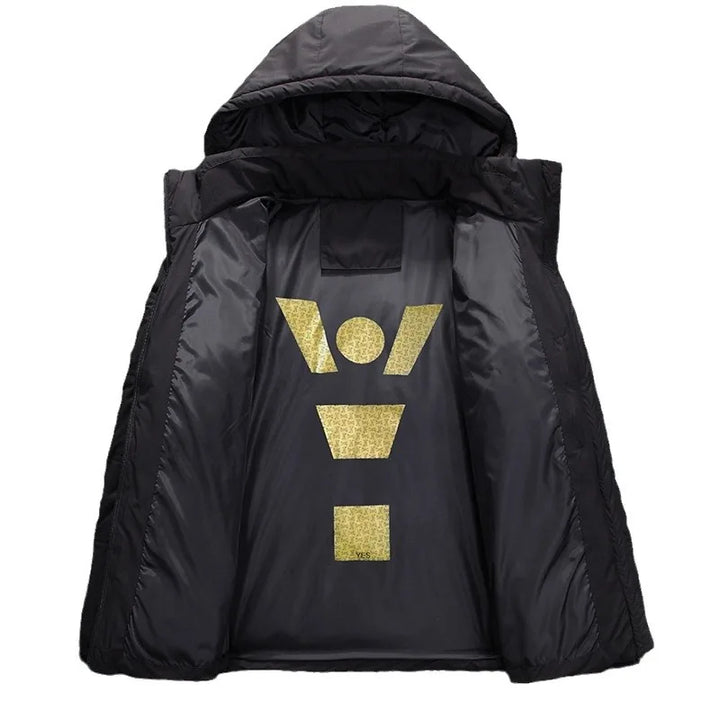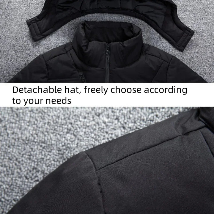 Men's winter stand up collar detachable hooded windproof double zipper design down jacket with multiple pockets for warmth