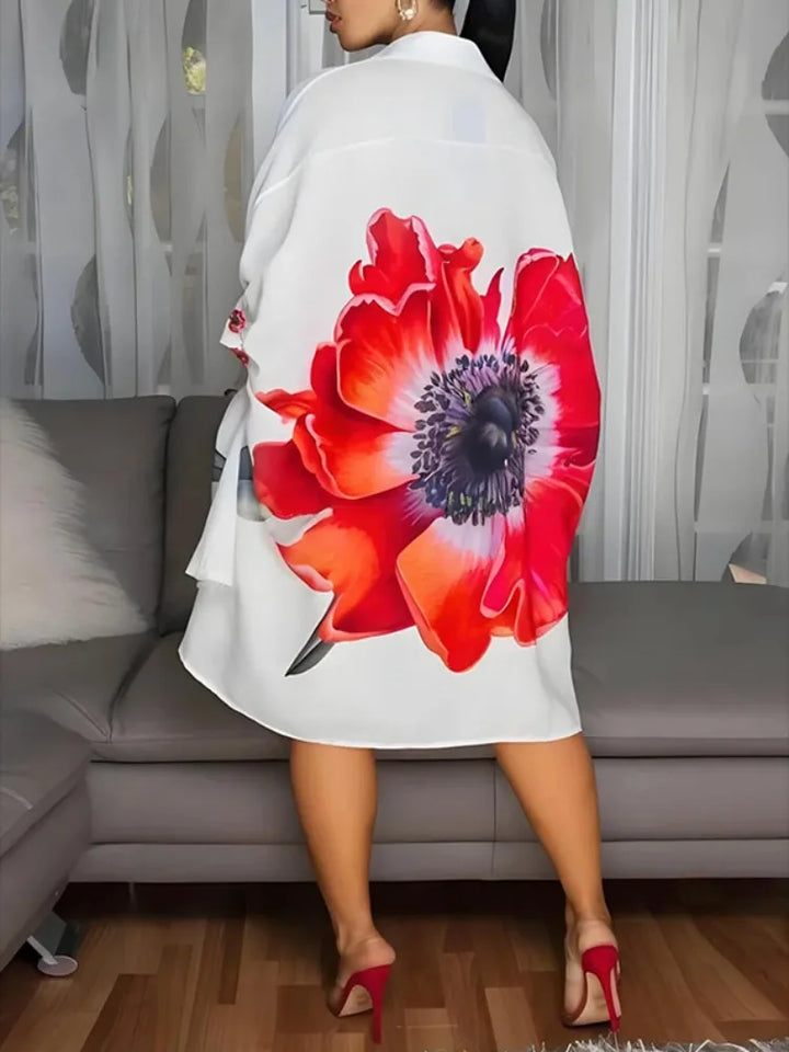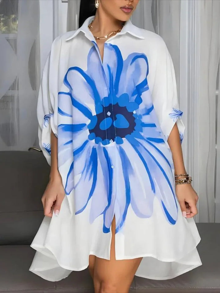 Missuoo Women's Oversized Floral Printed Shirt Dress 2025 Fall New Button Down Half Sleeves Knee Length Casual Dresses