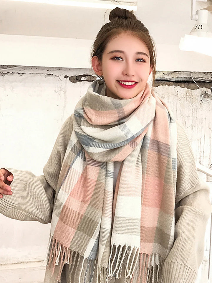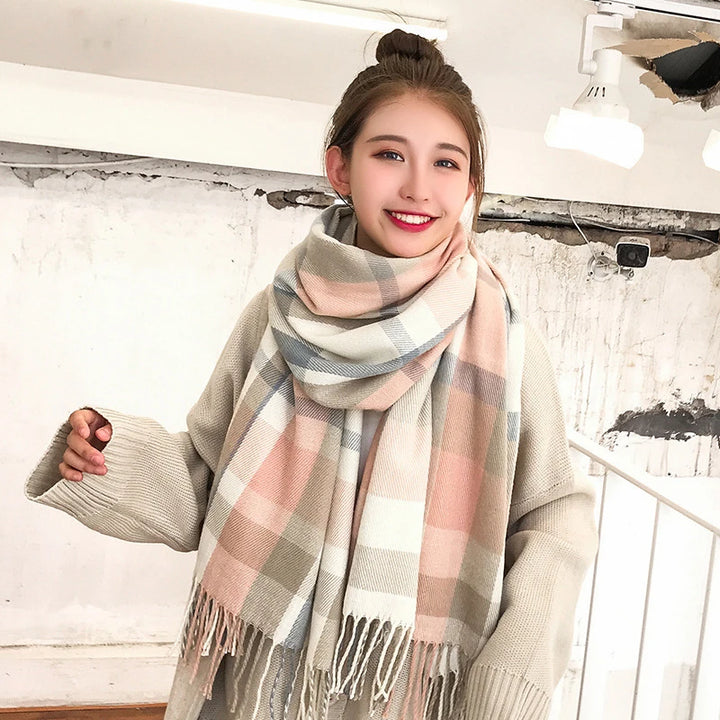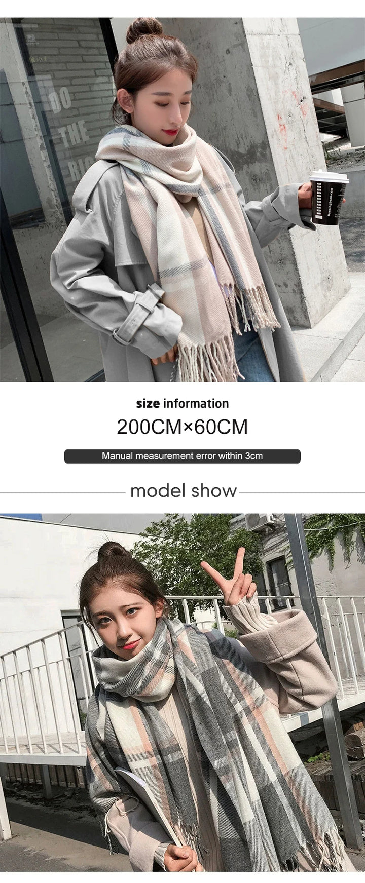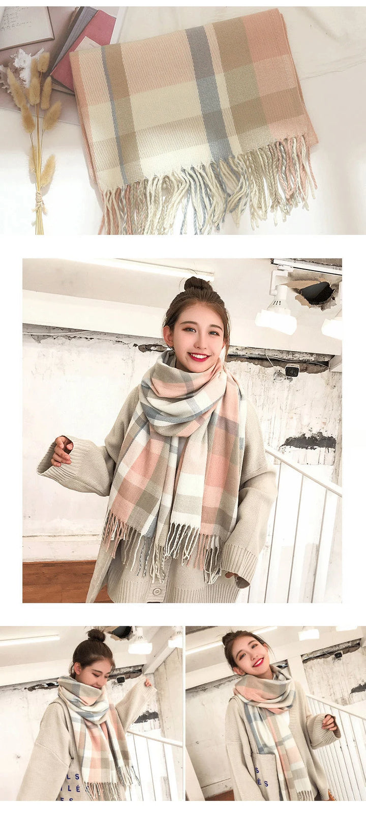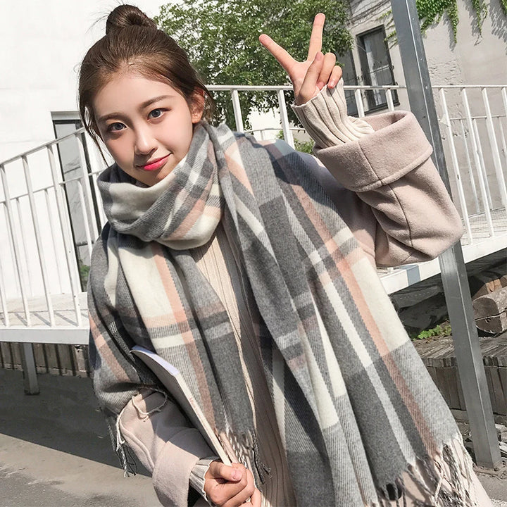 New 2025 Imitation Cashmere Women Scarf Winter Sweet Preppy Style Fringed Scarve Pashmina Mujer Foulard Bufanda Long Wrap Shawls