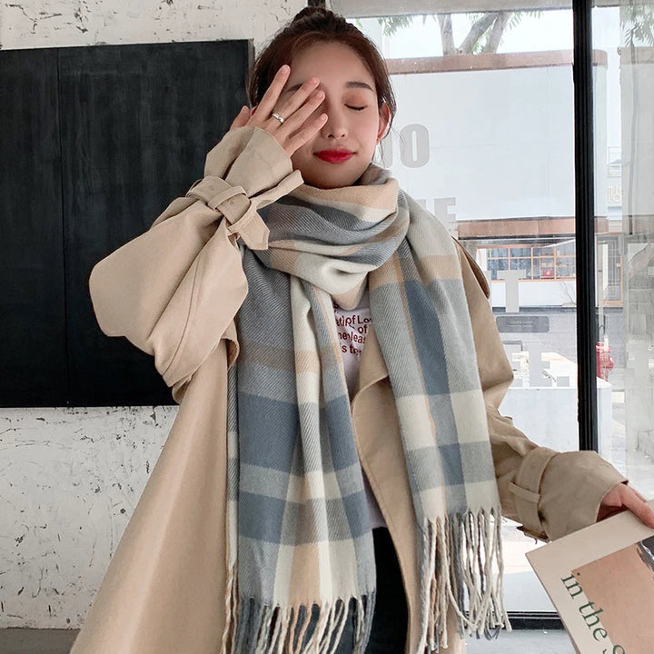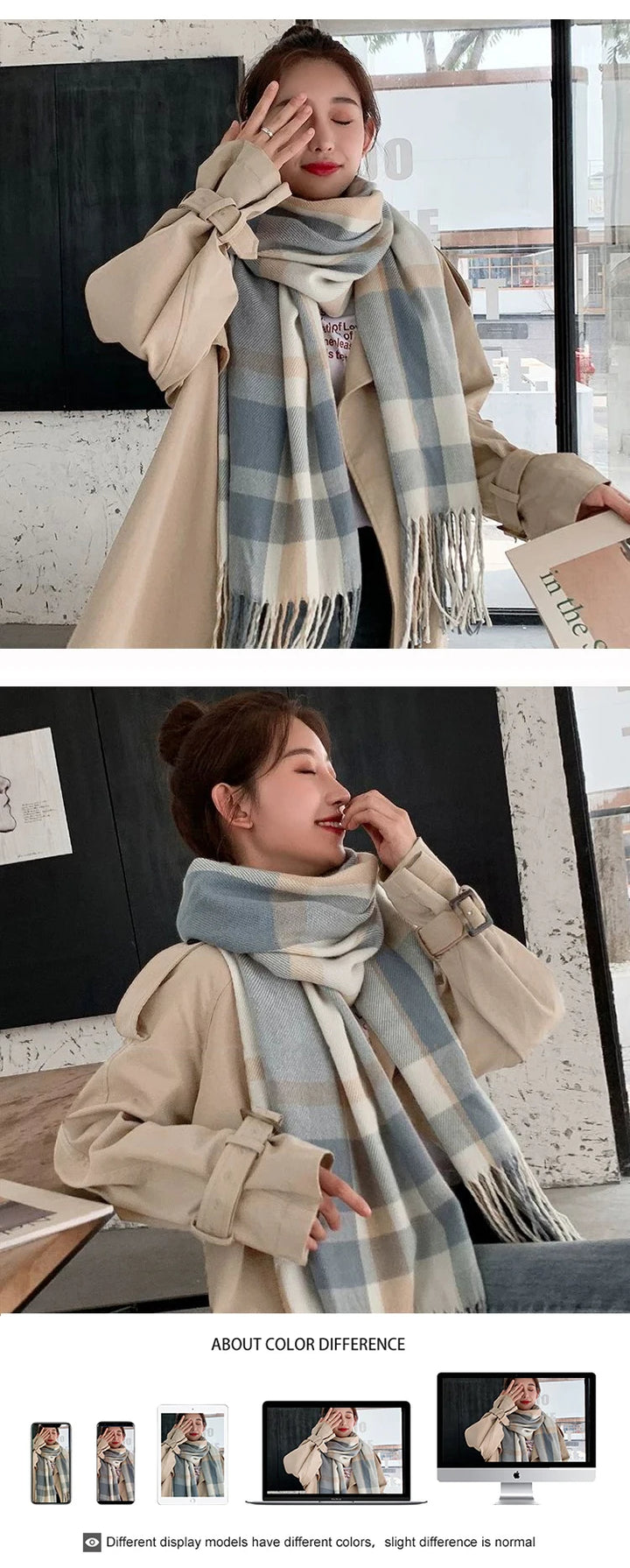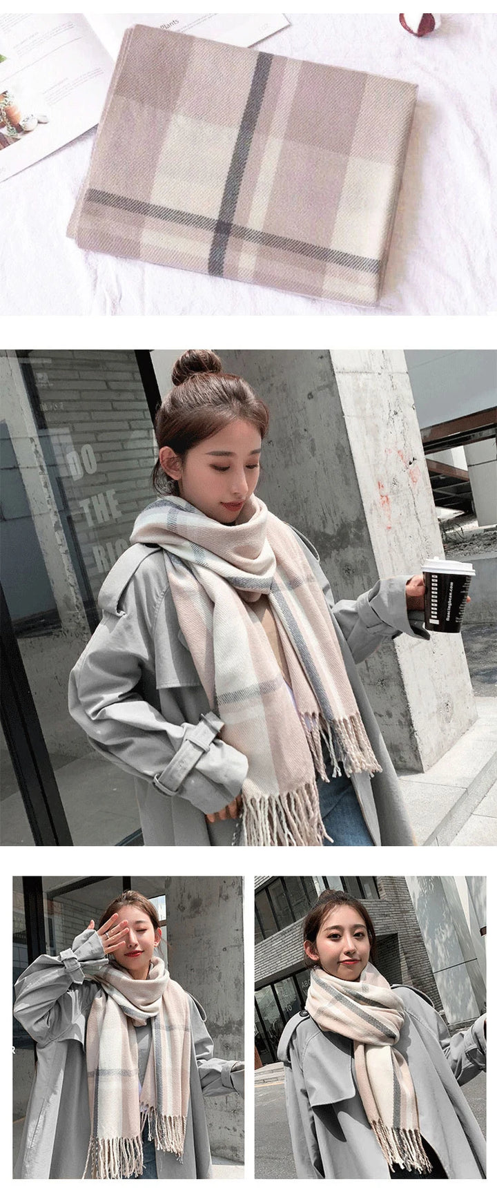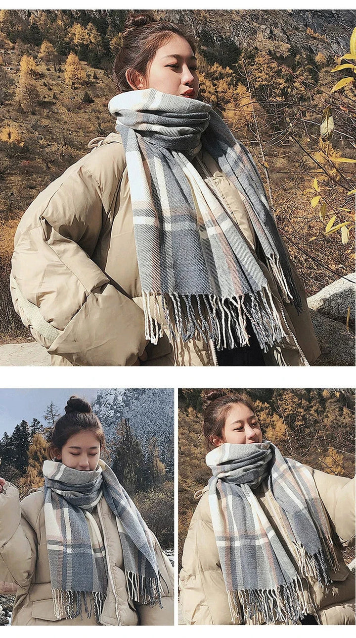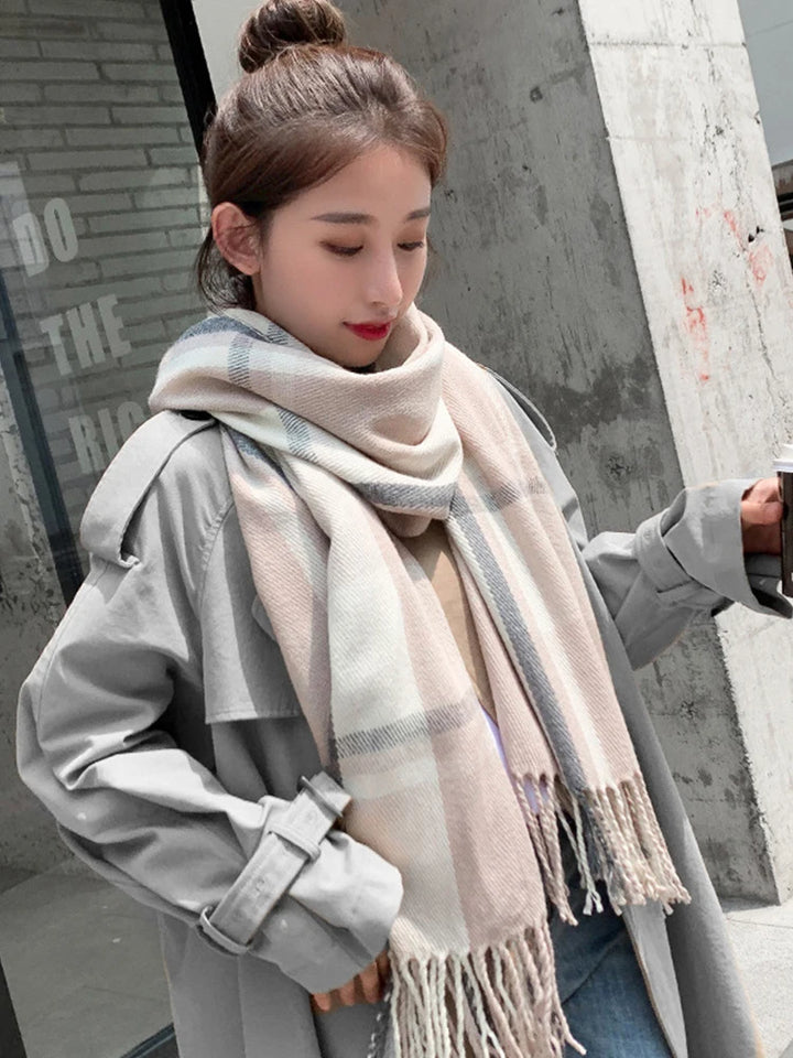 New 2025 Imitation Cashmere Women Scarf Winter Sweet Preppy Style Fringed Scarve Pashmina Mujer Foulard Bufanda Long Wrap Shawls
