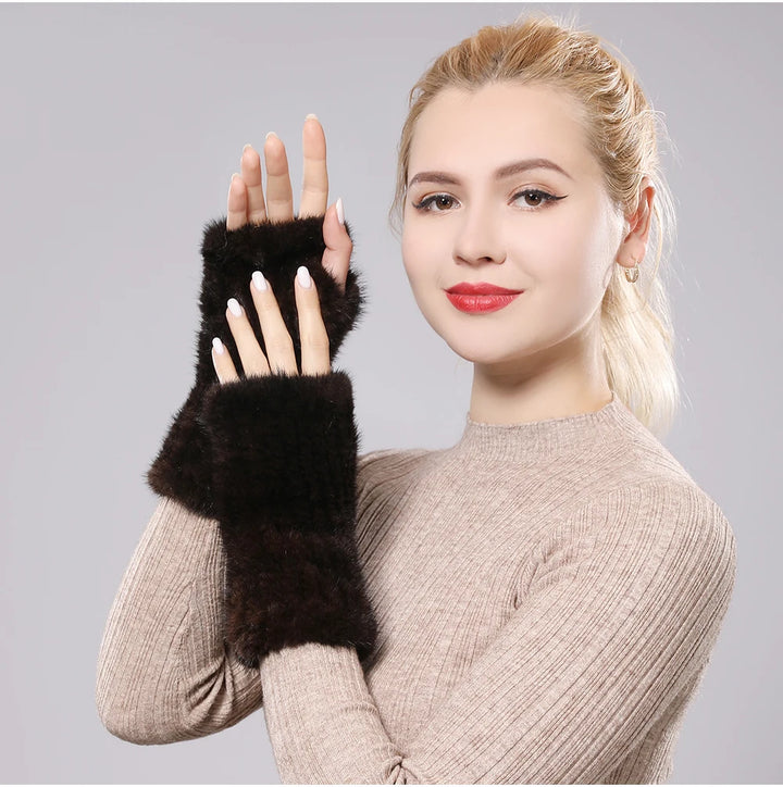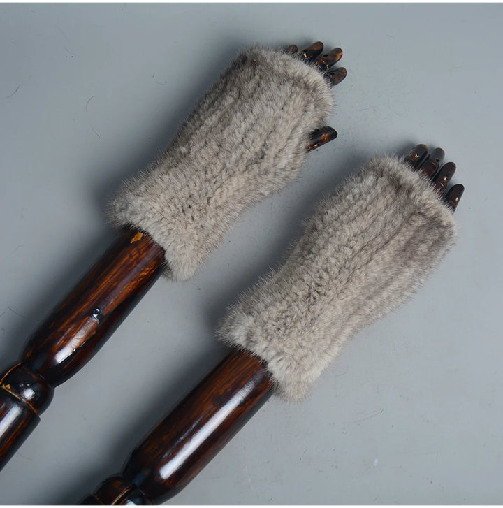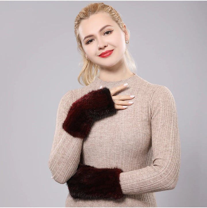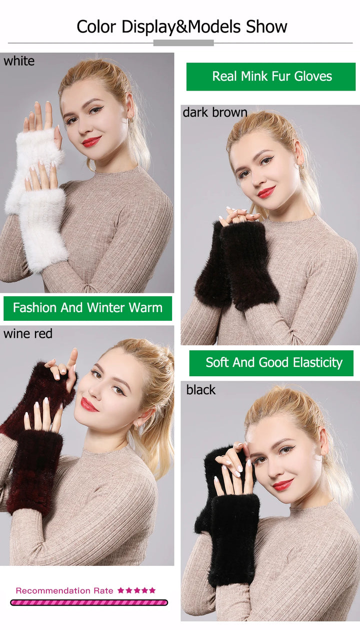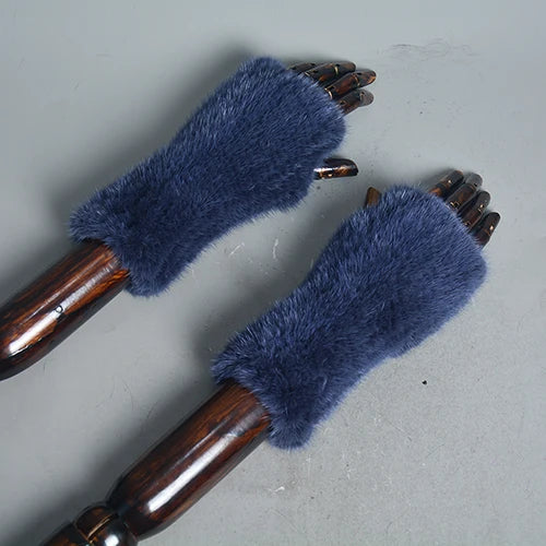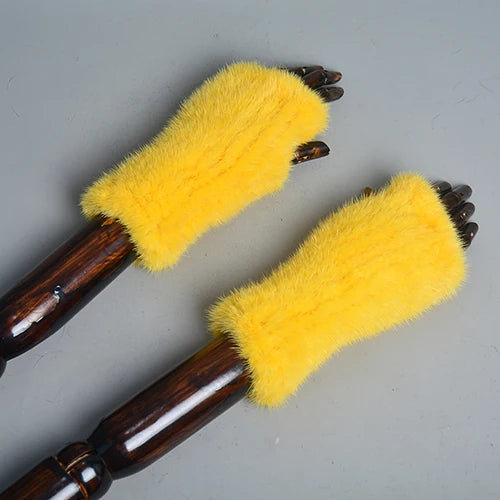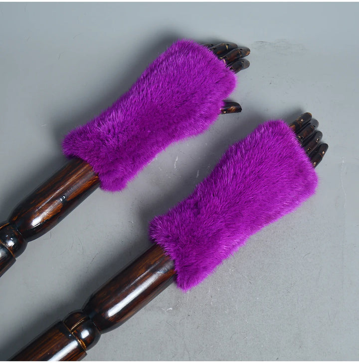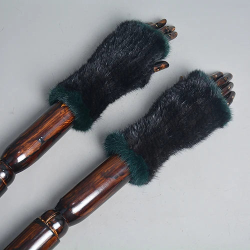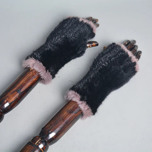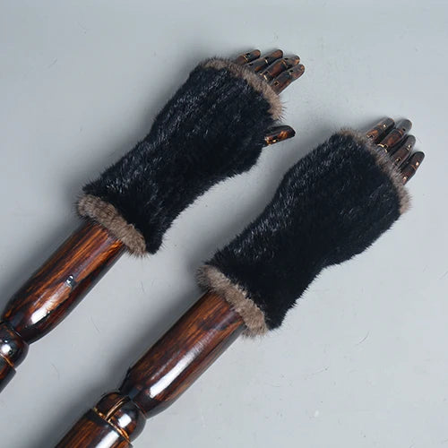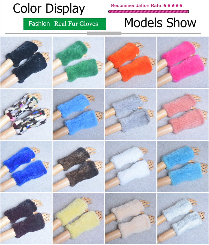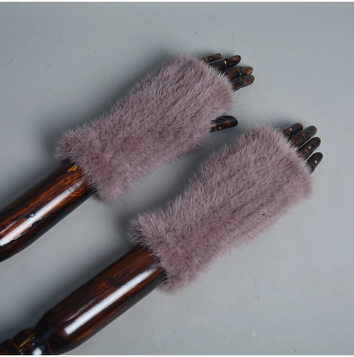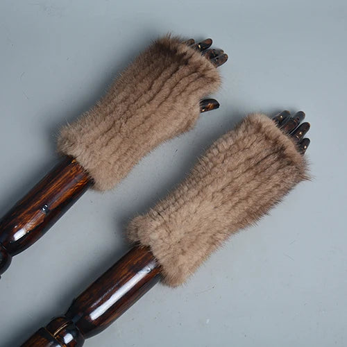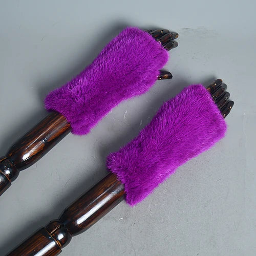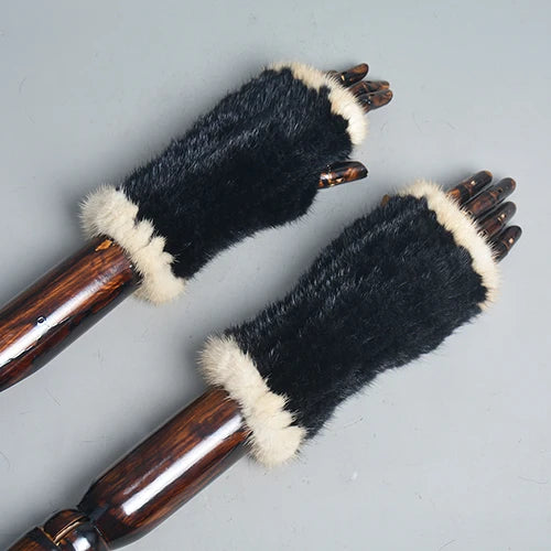 New Women 100% Real Genuine Knitted Mink Fur Mittens Winter Warm Lady Real Fur Fingerless Gloves Handmade Knit Mink Fur Mitten