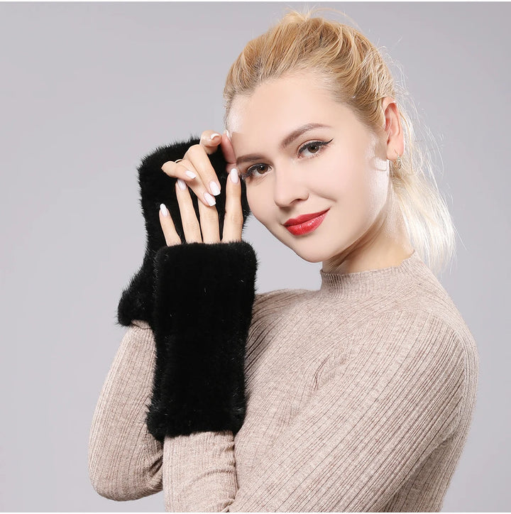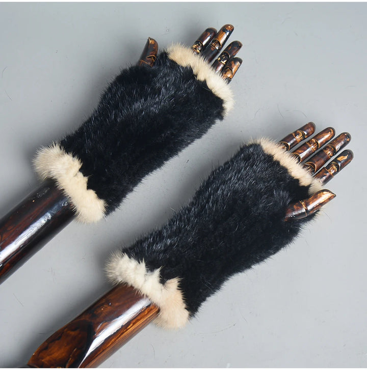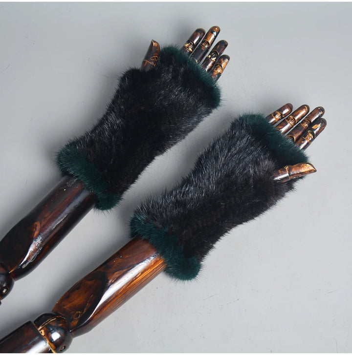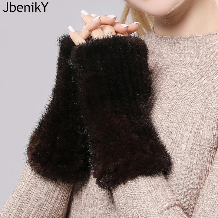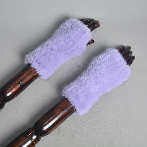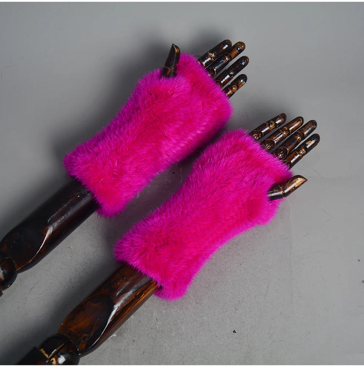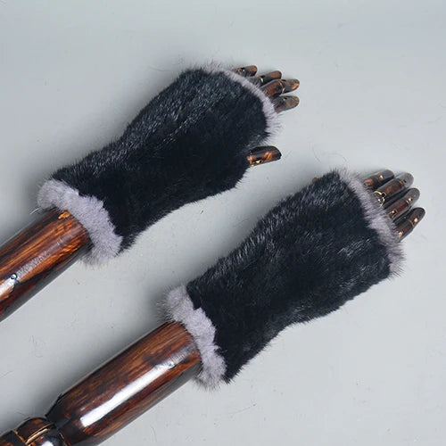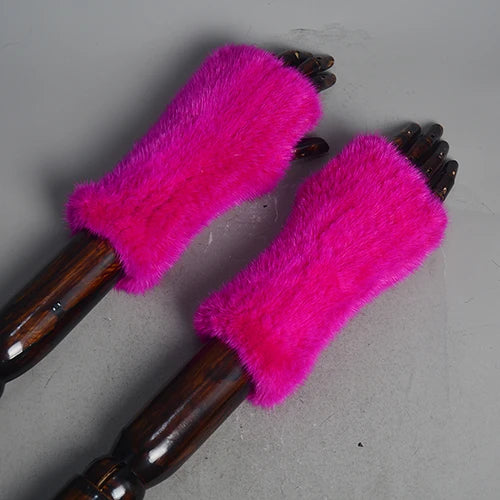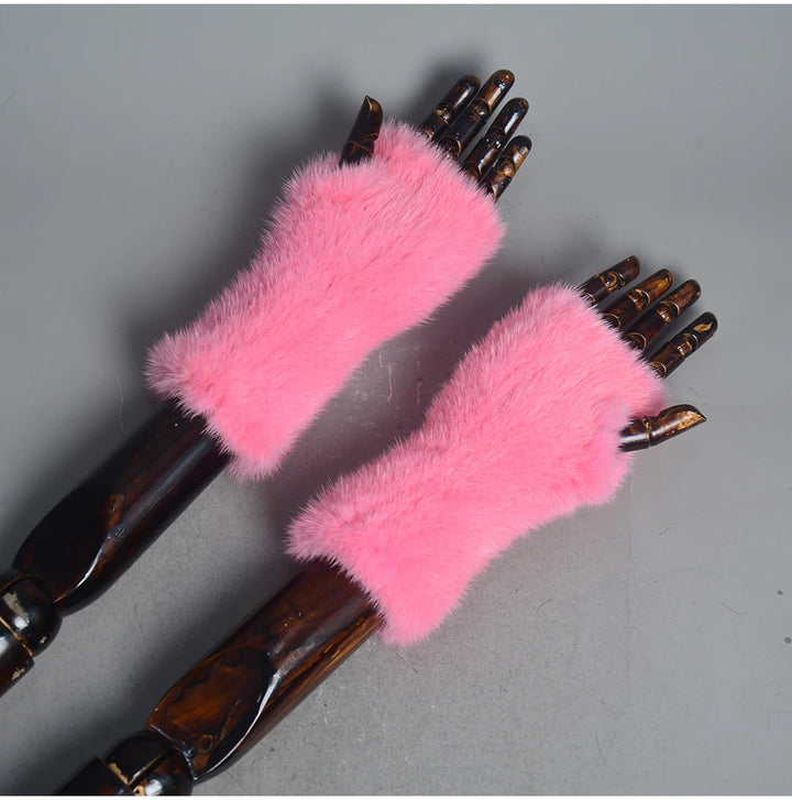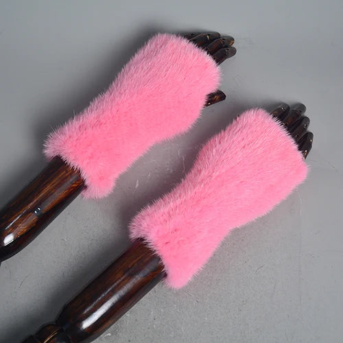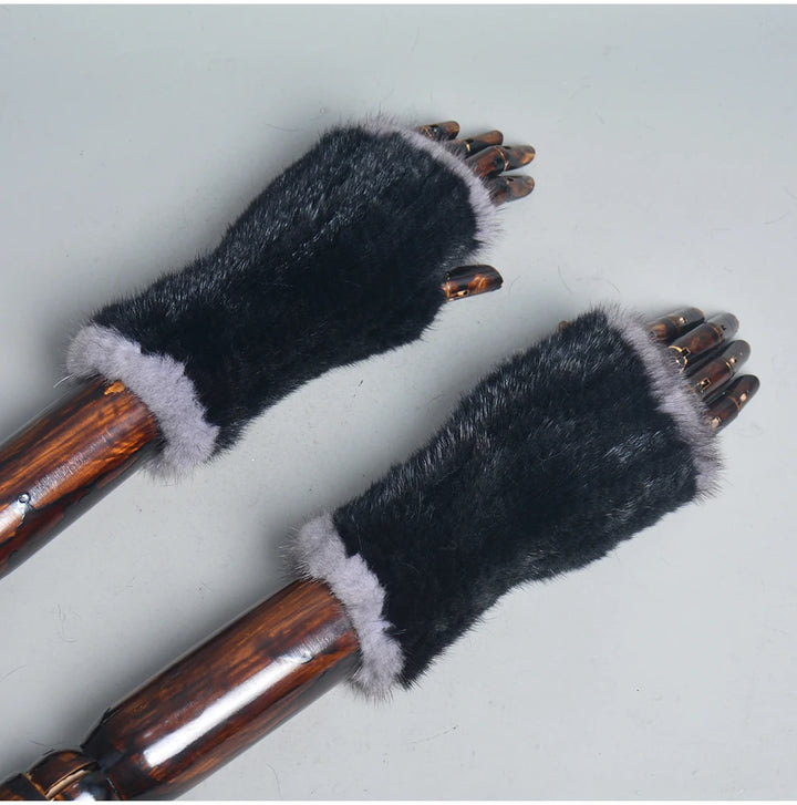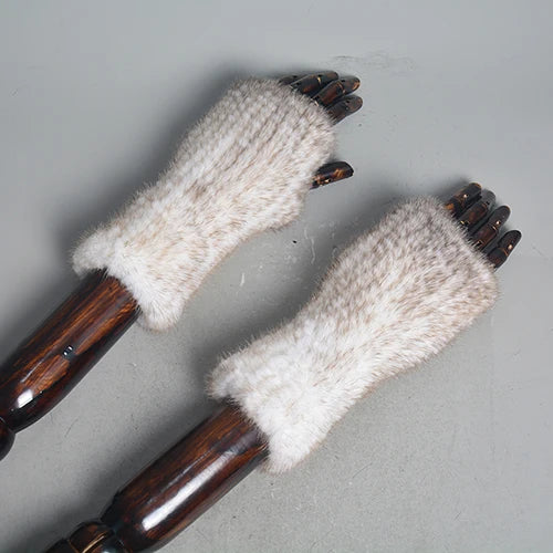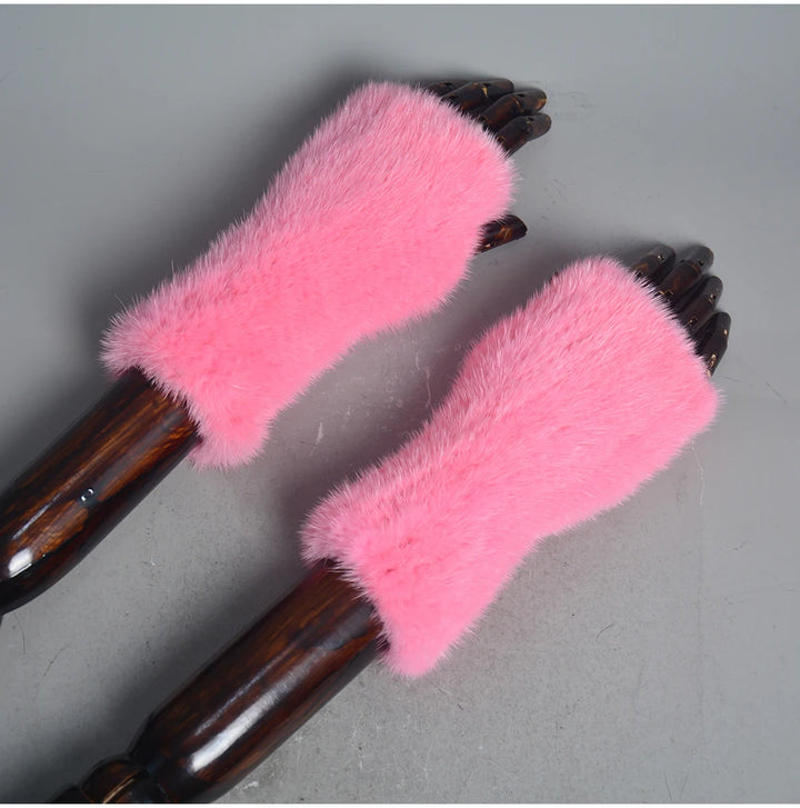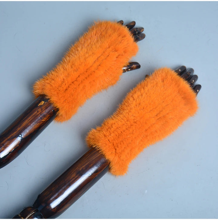 New Women 100% Real Genuine Knitted Mink Fur Mittens Winter Warm Lady Real Fur Fingerless Gloves Handmade Knit Mink Fur Mitten