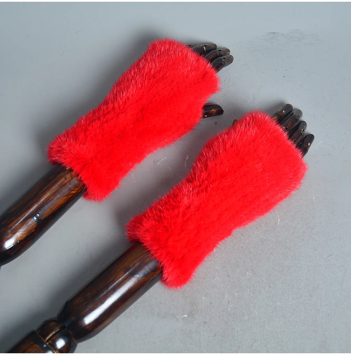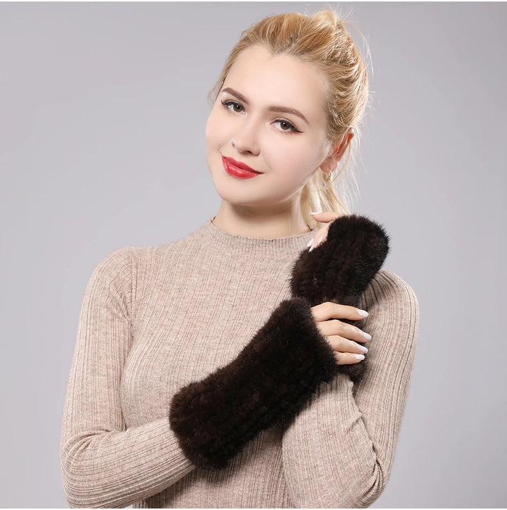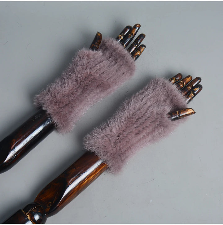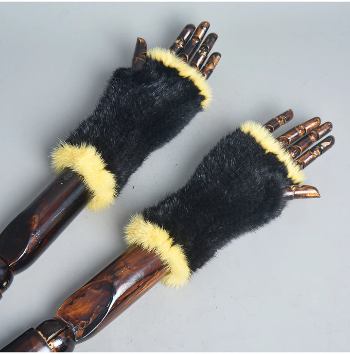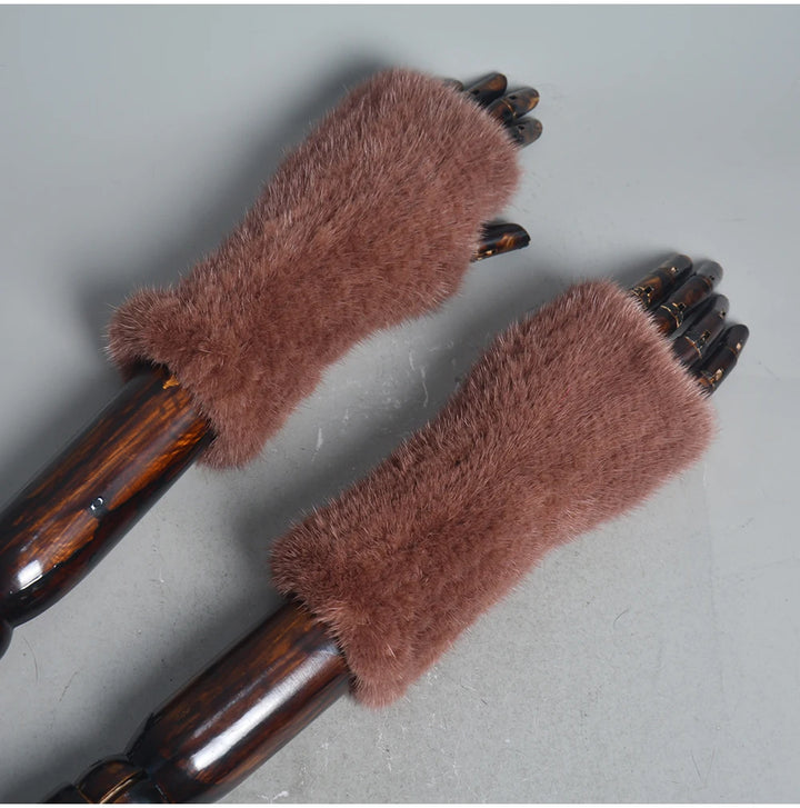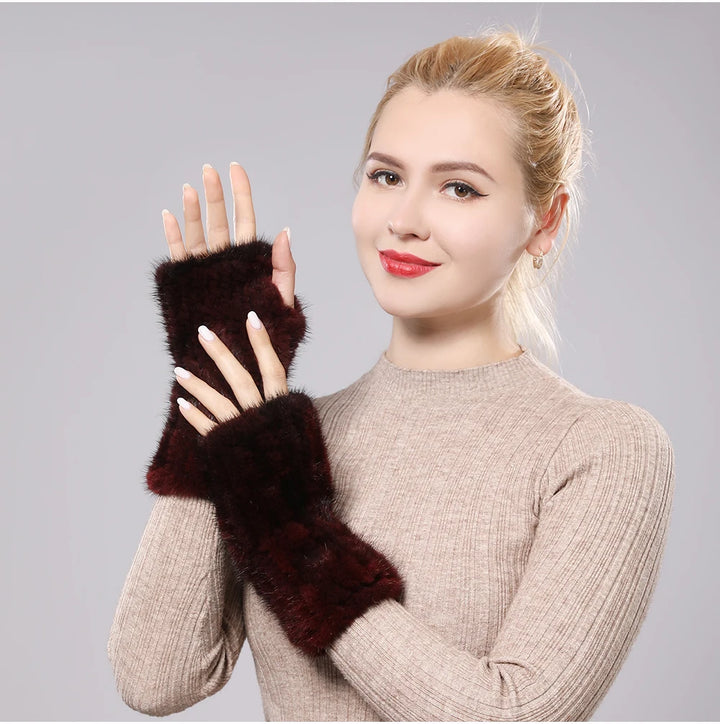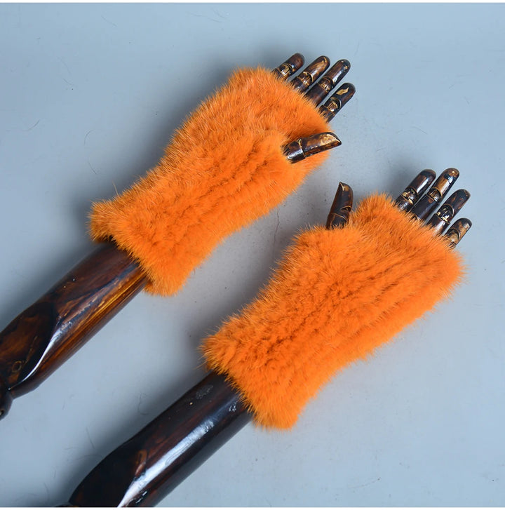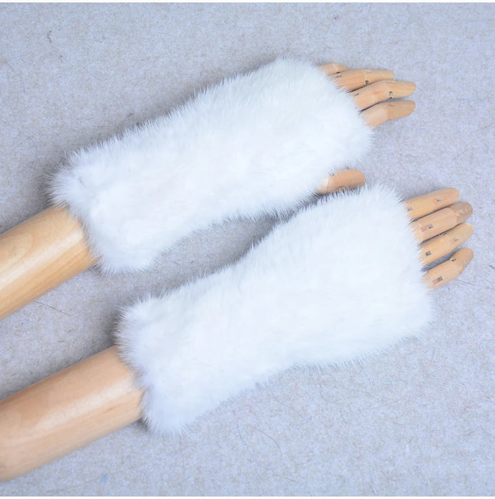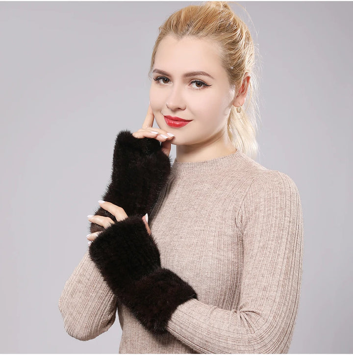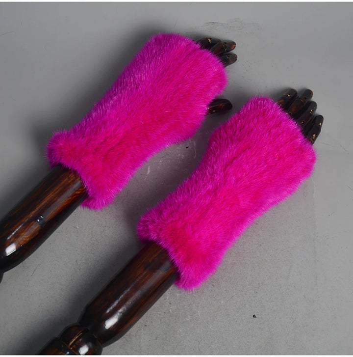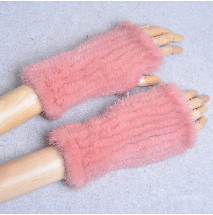 New Women 100% Real Genuine Knitted Mink Fur Mittens Winter Warm Lady Real Fur Fingerless Gloves Handmade Knit Mink Fur Mitten